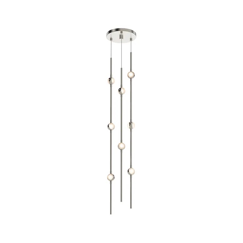 Celestial imagery meets modern technology in the Constellation® family. LED hubs are fastened along linear strands of various lengths like beads on a necklace. These are suspended in distinctive configurations, creating powerful luminance within a vertical space. Constellation® is available in nine distinct styles with limitless configurations. Choose from crystal facets or soft white lenses, with metal finishes of Satin Nickel, Espresso Black, or Satin Brass.