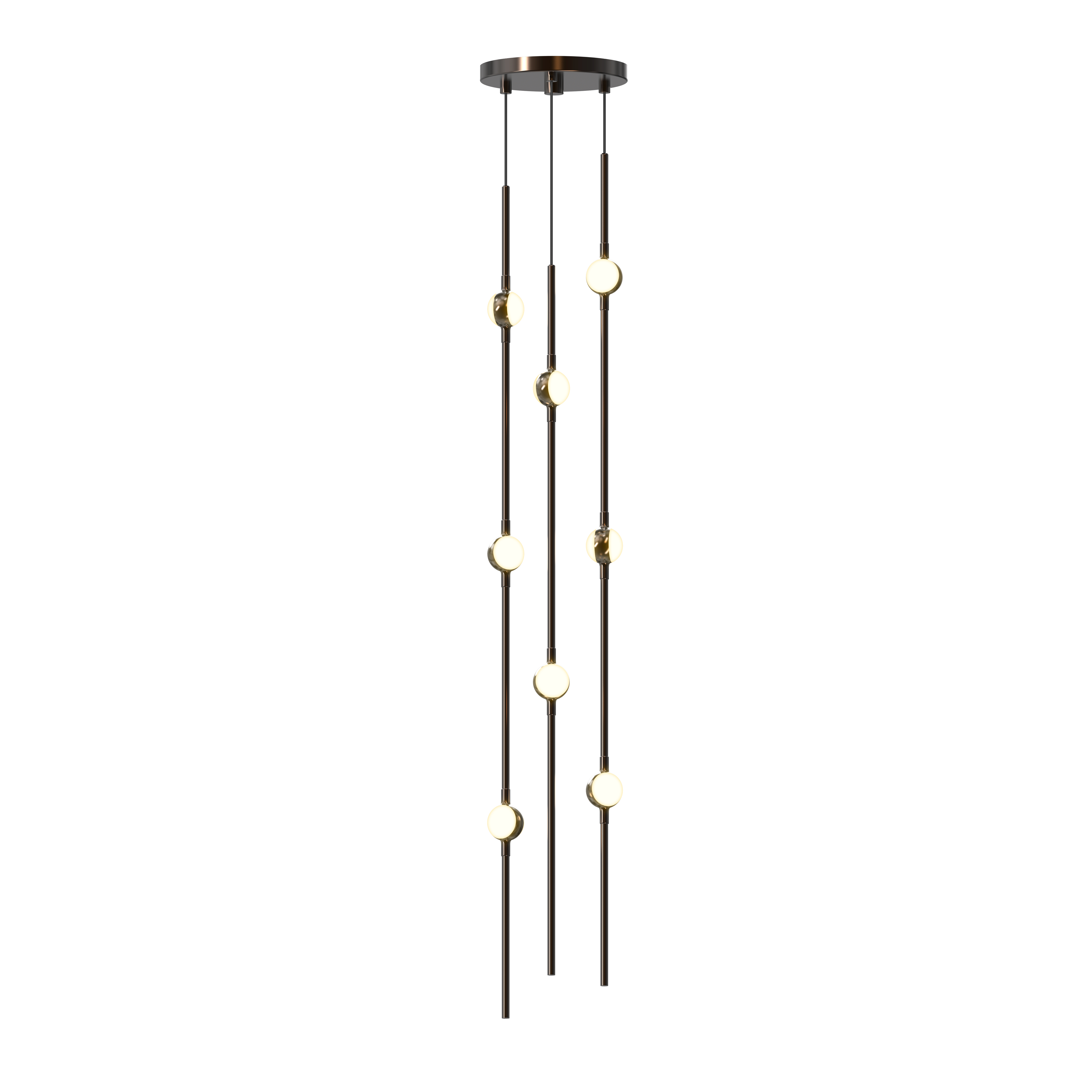 Celestial imagery meets modern technology in the Constellation® family. LED hubs are fastened along linear strands of various lengths like beads on a necklace. These are suspended in distinctive configurations, creating powerful luminance within a vertical space. Constellation® is available in nine distinct styles with limitless configurations. Choose from crystal facets or soft white lenses, with metal finishes of Satin Nickel, Espresso Black, or Satin Brass.