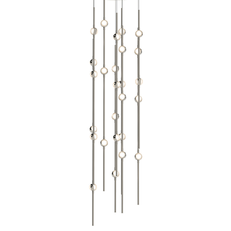 Celestial imagery meets modern technology in the Constellation® family. LED hubs are fastened along linear strands of various lengths like beads on a necklace. These are suspended in distinctive configurations, creating powerful luminance within a vertical space. Constellation® is available in nine distinct styles with limitless configurations. Choose from crystal facets or soft white lenses, with metal finishes of Satin Nickel, Espresso Black, or Satin Brass.