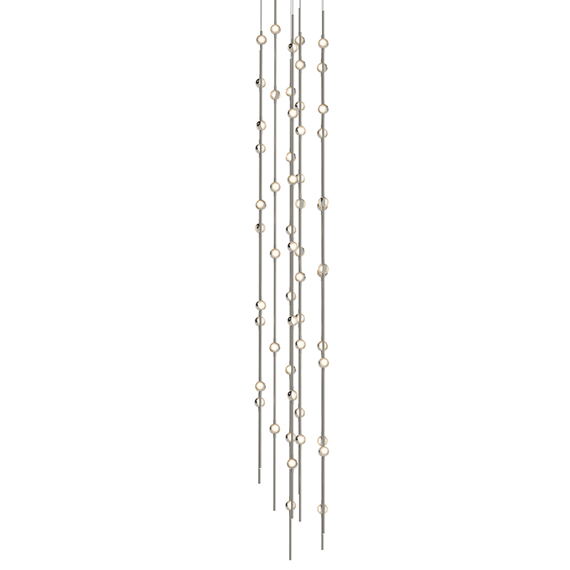 Celestial imagery meets modern technology in the Constellation® family. LED hubs are fastened along linear strands of various lengths like beads on a necklace. These are suspended in distinctive configurations, creating powerful luminance within a vertical space. Constellation® is available in nine distinct styles with limitless configurations. Choose from crystal facets or soft white lenses, with metal finishes of Satin Nickel, Espresso Black, or Satin Brass.