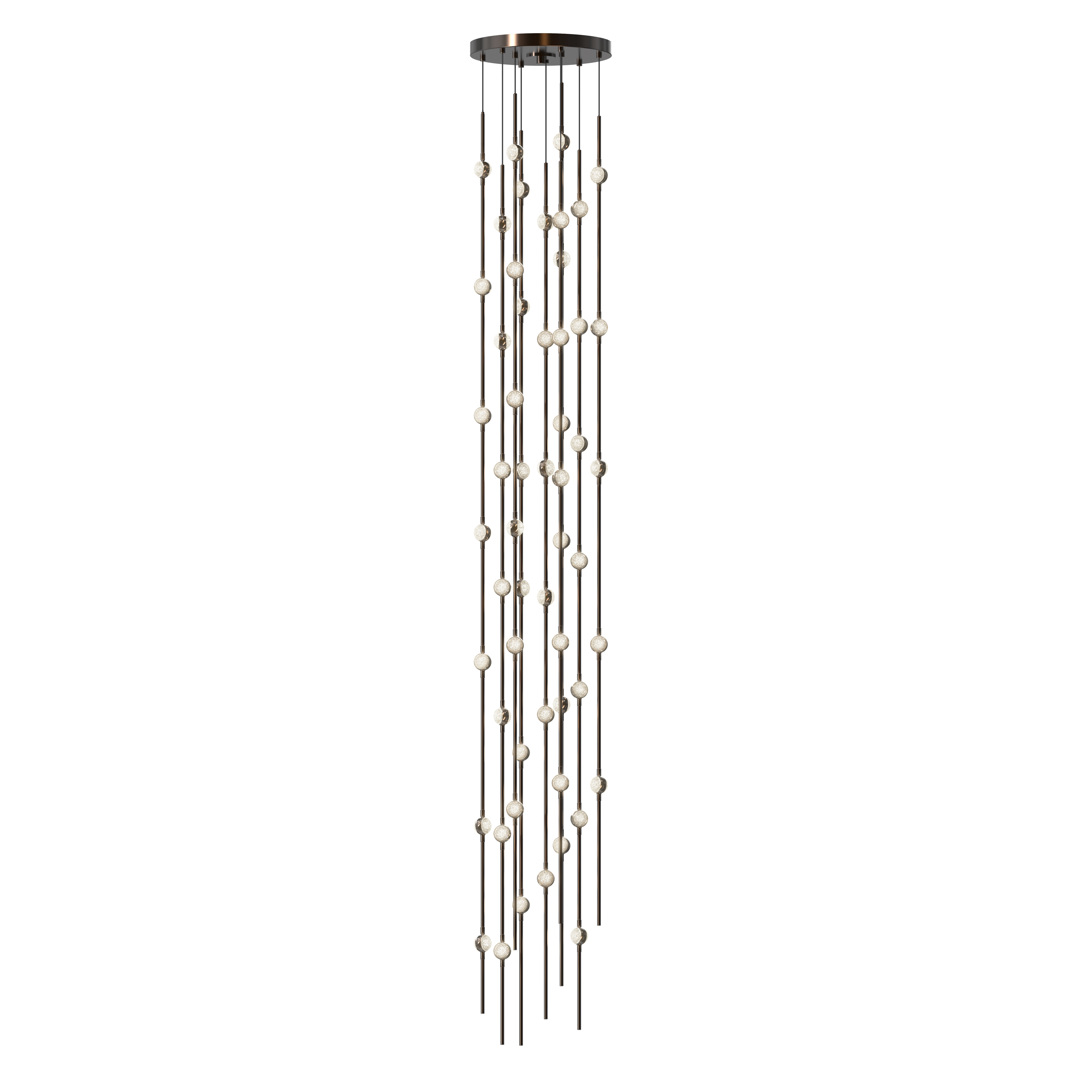 Celestial imagery meets modern technology in the Constellation® family. LED hubs are fastened along linear strands of various lengths like beads on a necklace. These are suspended in distinctive configurations, creating powerful luminance within a vertical space. Constellation® is available in nine distinct styles with limitless configurations. Choose from crystal facets or soft white lenses, with metal finishes of Satin Nickel, Espresso Black, or Satin Brass.