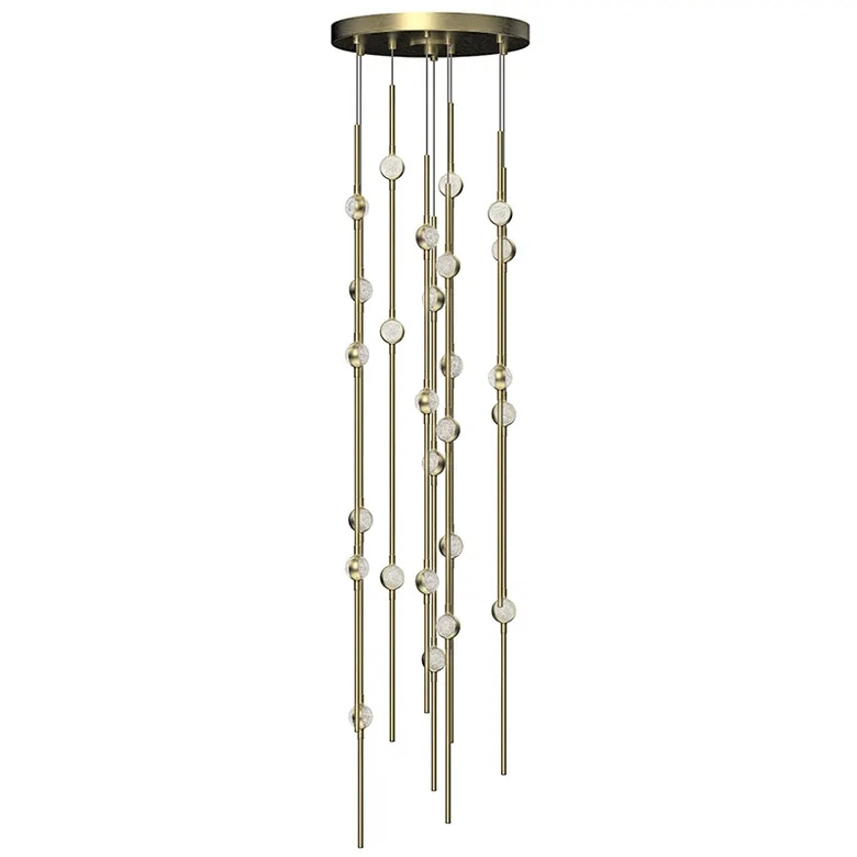 Celestial imagery meets modern technology in the Constellation® family. LED hubs are fastened along linear strands of various lengths like beads on a necklace. These are suspended in distinctive configurations, creating powerful luminance within a vertical space. Constellation® is available in nine distinct styles with limitless configurations. Choose from crystal facets or soft white lenses, with metal finishes of Satin Nickel, Espresso Black, or Satin Brass.