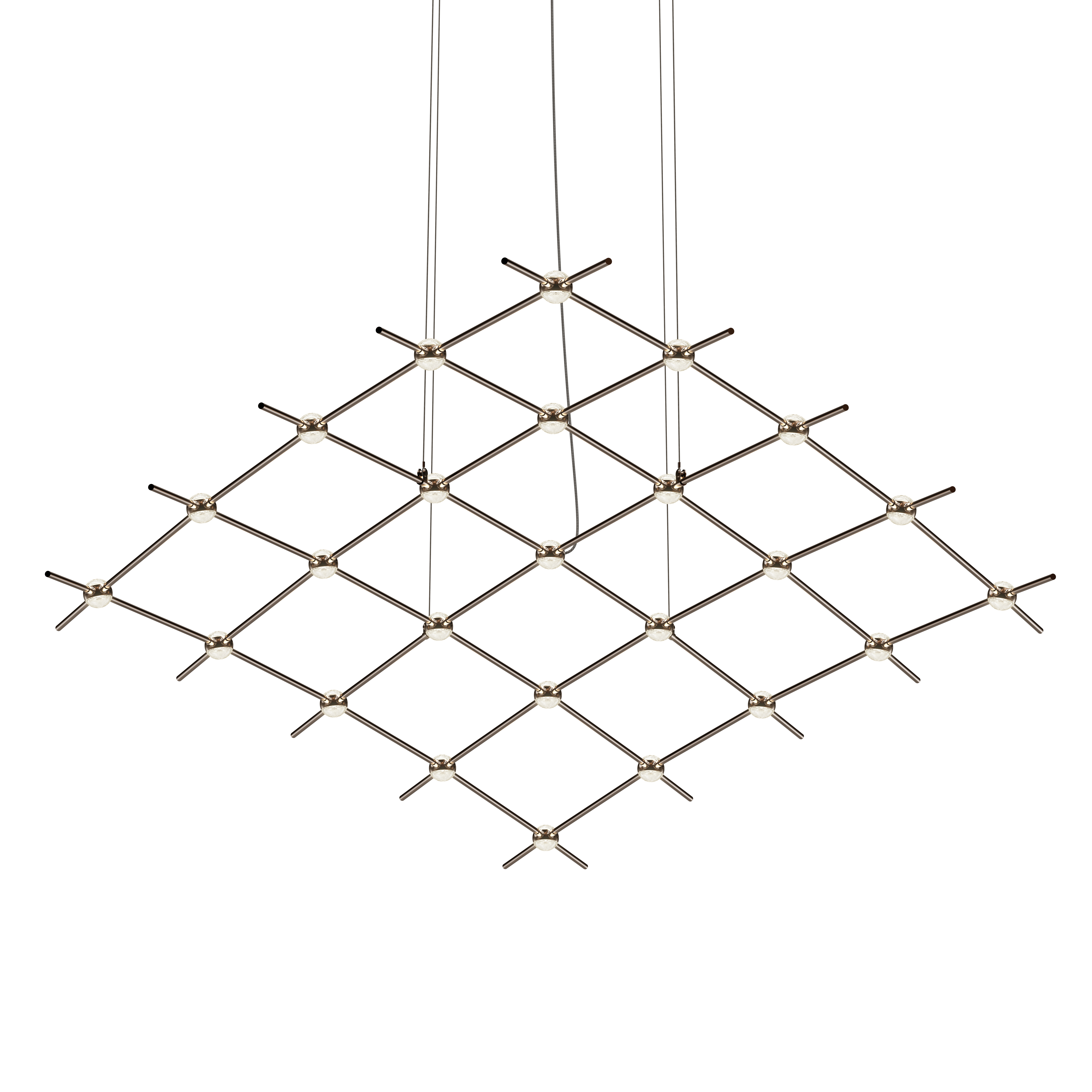 LED hubs connected in linear strands of various lengths are suspended to form dramatically powerful luminance within a vertical space. Available in a variety of sizes and configurations, with lens options of crystal facets or soft white, Constellation Andromeda can also be customized for your project.
