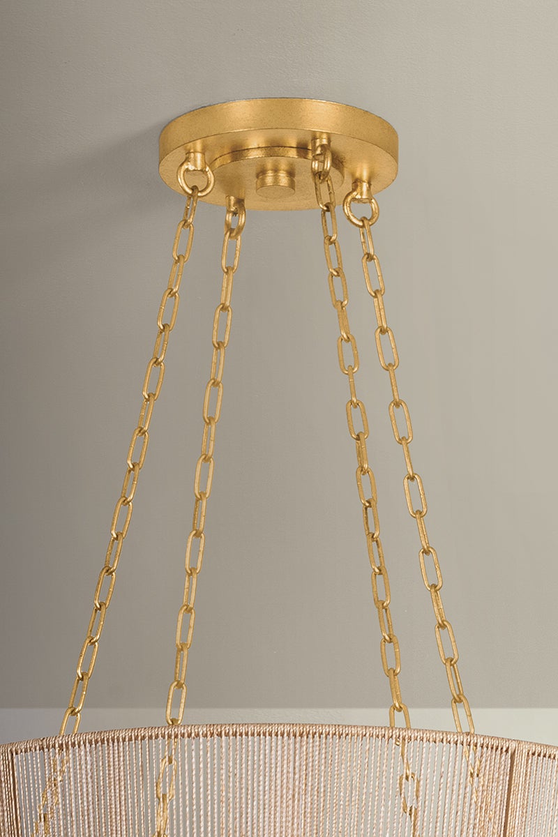 Channeling traditional basketry, the shade of the Ocean Hill pendant is handwoven from fine abaca. A belt of matching string wraps around the center, accentuating the hourglass shape of the fixture. LED light filters through the dense weave to create an inviting glow. Suspended by four chains finished in Vintage Gold Leaf, Ocean Hill is the perfect reminder of how exciting modern craftsmanship can be.