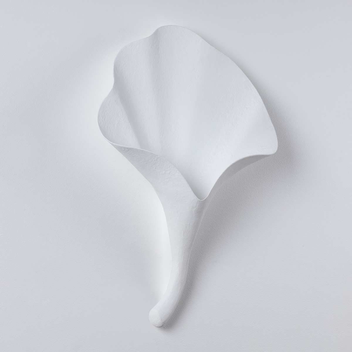 Old Hollywood glamor meets modern simplicity in this sculptural sconce. The leaf-shaped design, delicately fluted with a curved stem, exhibits a refined beauty. Available in a Vintage Gold Leaf or Gesso White finish, it looks beautiful mounted independently or paired with another.