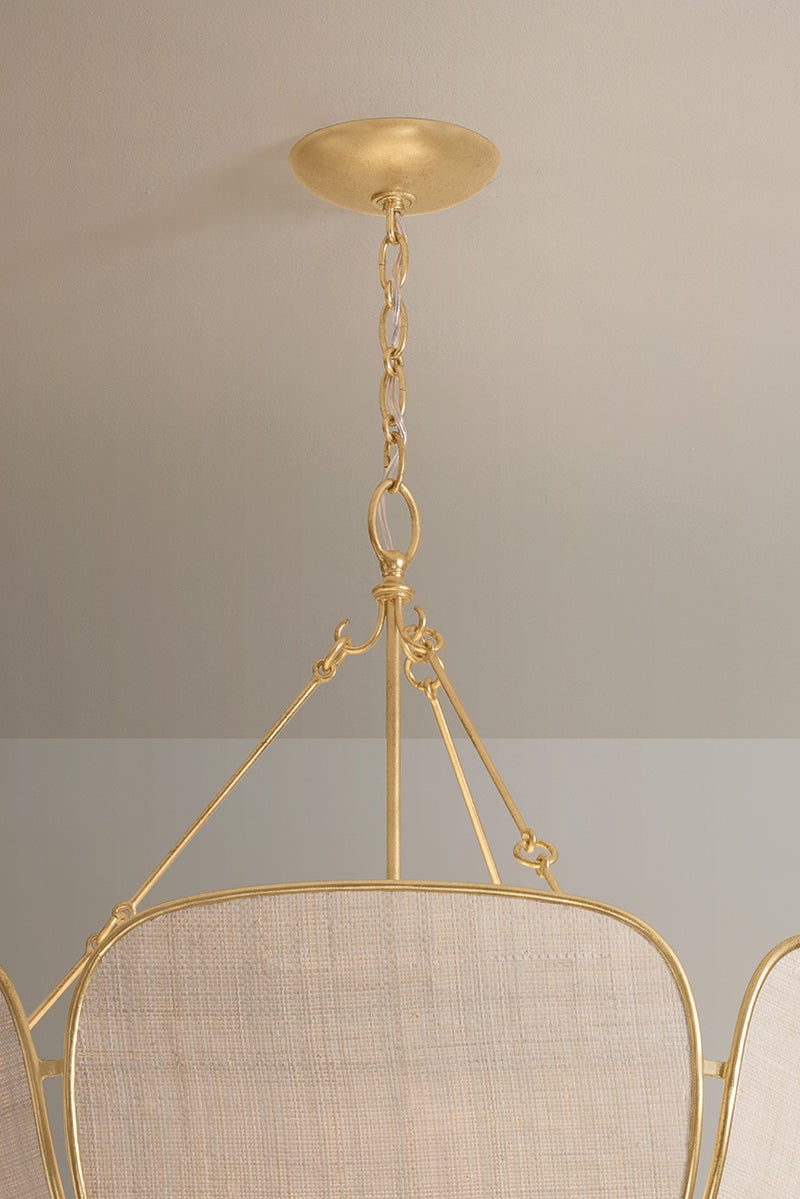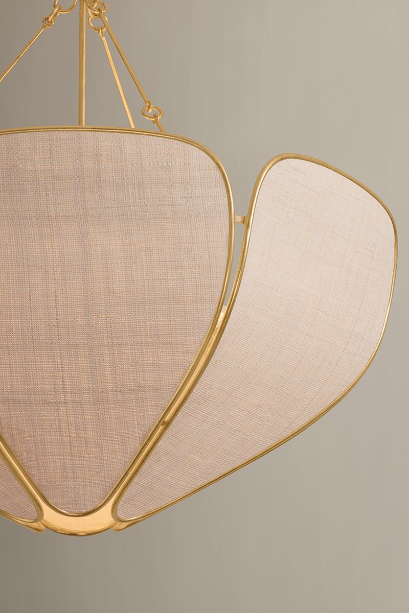 Inspired by Art Nouveau designs, the Bayville family uses natural materials to create flowing botanical silhouettes. The breezy Saguran fabric shade is constructed of petal-like panels edged in Vintage Gold Leaf and lined with abaca. Available as a semi-flush and a pendant in two sizes, Bayville will breathe new life into any space.