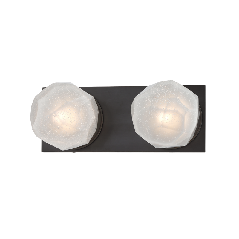 Nimbus arranges glass diffusers into organic geometric shapes, soft edges distinguishing each facet from the next. Artisans blow the glass into form five times, intentionally dropping pockets of air into one-of-a-kind scatters of globs. A stepped backplate finishes the piece.