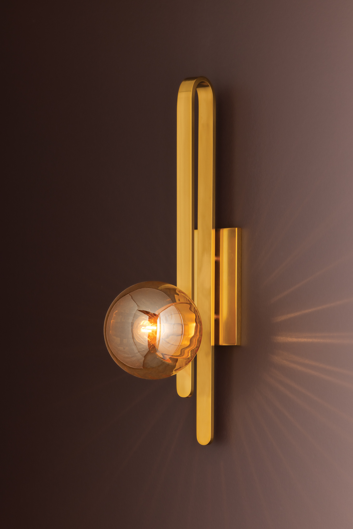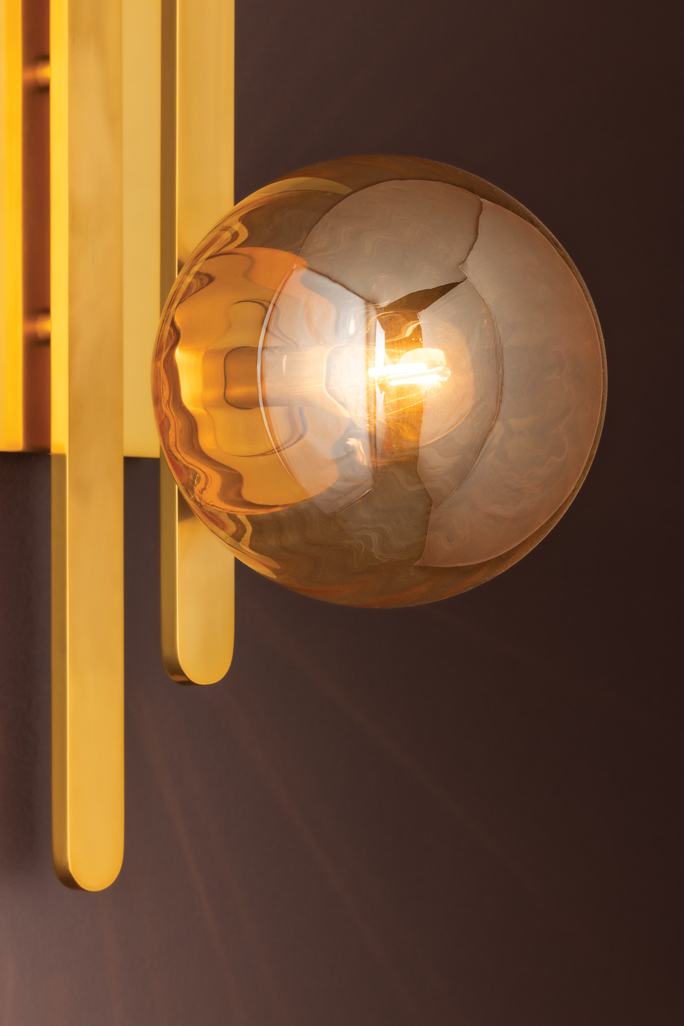 Like grapes on a vine, a cluster of glass orbs perch along the antique-inspired frame of Cronus. The ribbed, light bronze glass emits a warm glow, complemented by gleaming Vintage Polished Brass arches. Available as a 1-light wall sconce or 12 or 21-light chandelier, Cronus infuses a living or dining space with old Hollywood glamor.