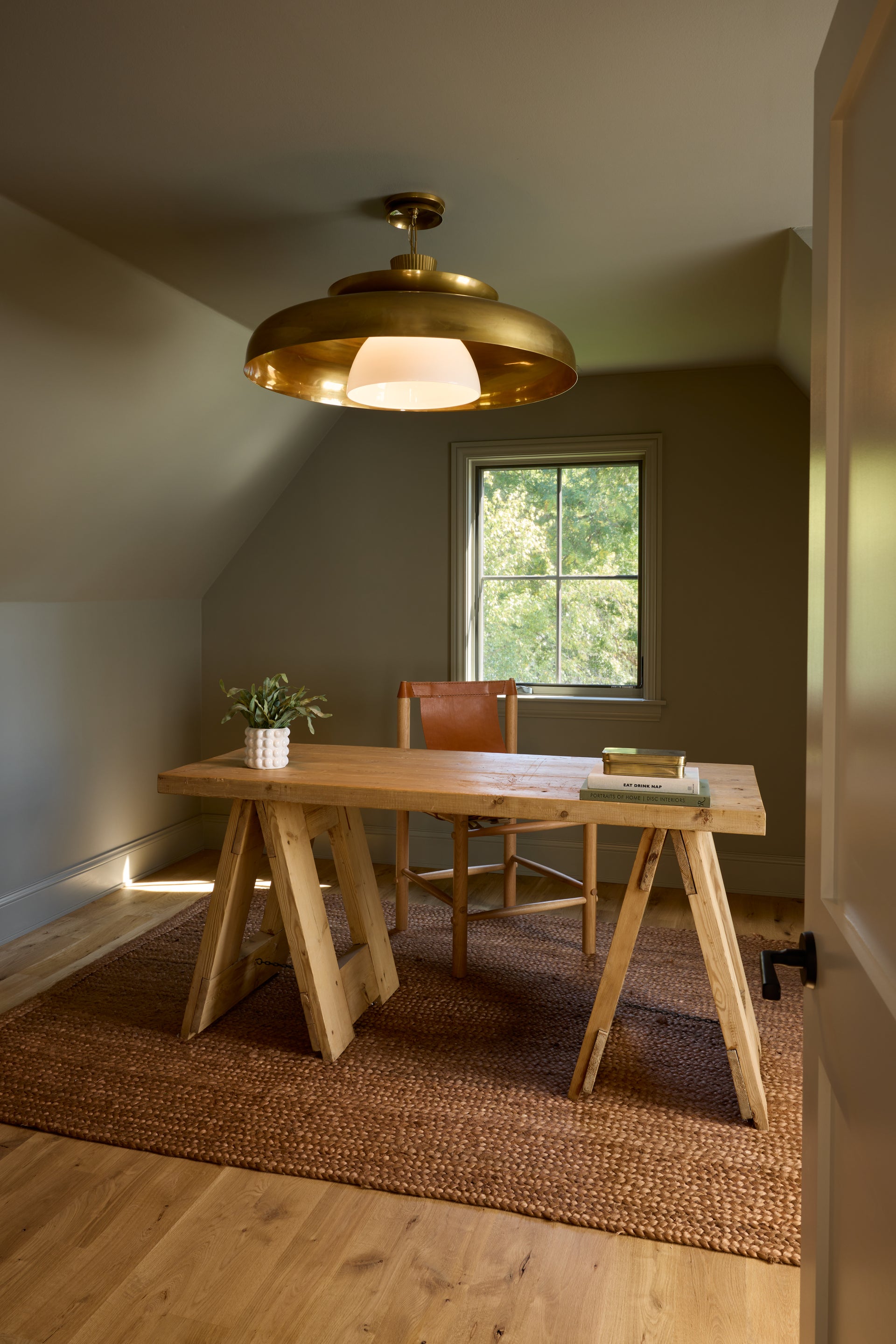 The architectural form and distinctive detailing of Ravenna make this shapely pendant a timeless treasure. Featuring alternating shallow bowl layers, the artistic stacked design culminates in a shiny opal glass shade nestled beneath a metal canopy. A ribbed cap adds an organic touch, while the allover Vintage Brass finish complements the glamorous silhouette.