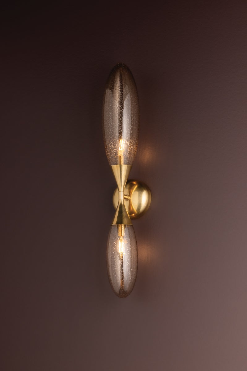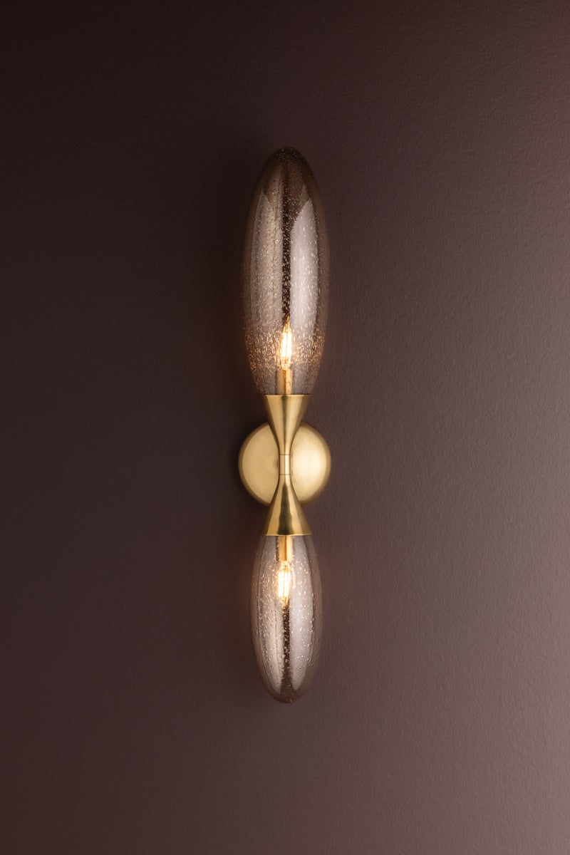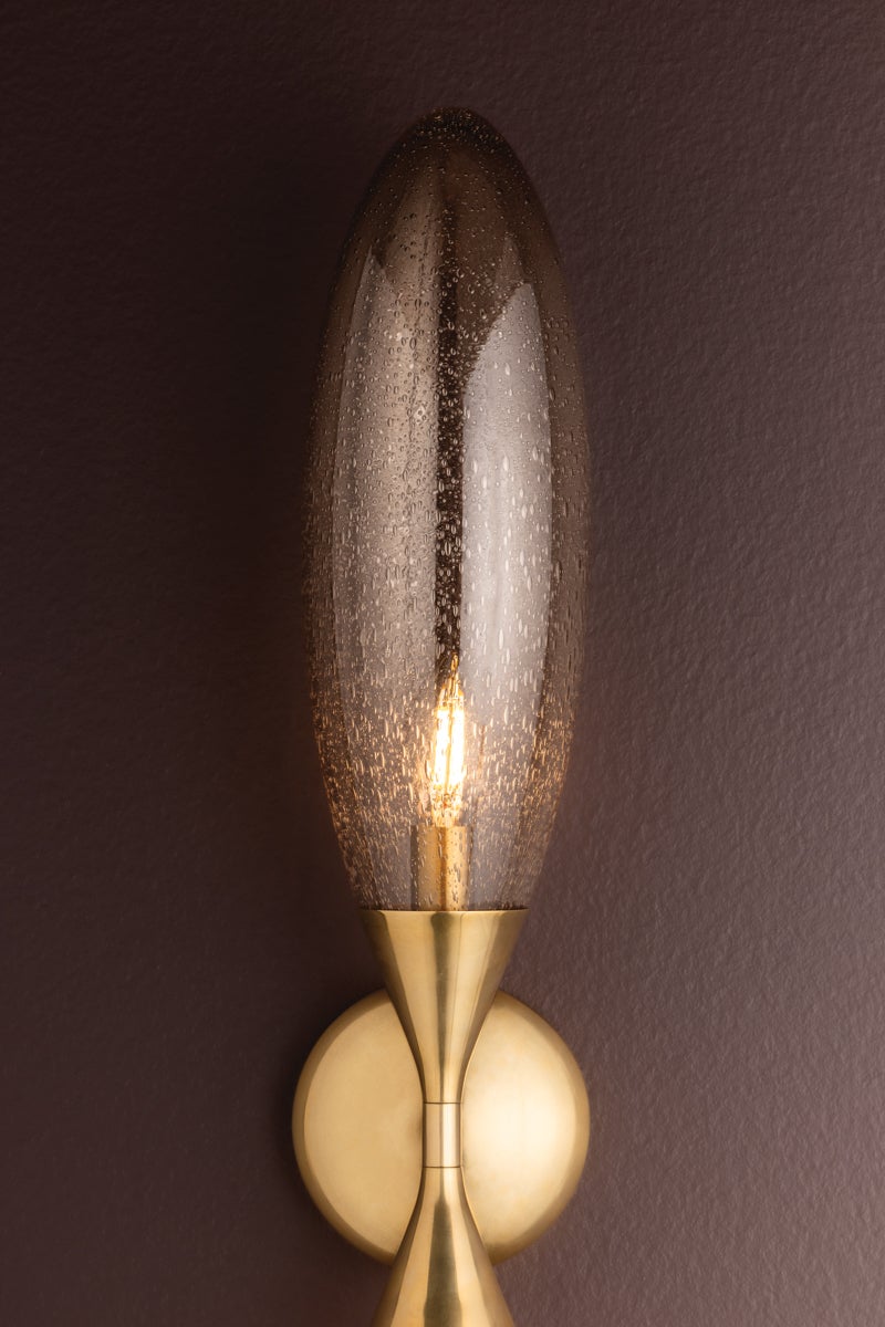 Organic forms and surprising geometry come together in the bold Sputnik-inspired design of Cordoba. This family of fixtures features an array of seedy light bronze glass shades that are light yet voluminous; organic yet refined. The Vintage Brass finish on the frame gives Cordoba a retro flair, while the futuristic shape of the glass shades adds a contemporary edge. Available as a sconce, semi-flush mount, and chandelier in two sizes, Cordoba is perfect for adding a dramatic, sculptural moment.