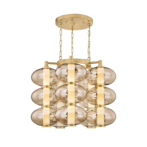 Drawing influence from the modernist era, Toulouse features sleek LED tubes surrounded by stacked oval-shaped glass orbs. The moody light bronze glass shades create bubble-like stacks, separated by Vintage Brass cuffs. Available as a sconce and a chandelier in two sizes, Toulouse is perfect for those who appreciate maximalist style with a contemporary twist.
