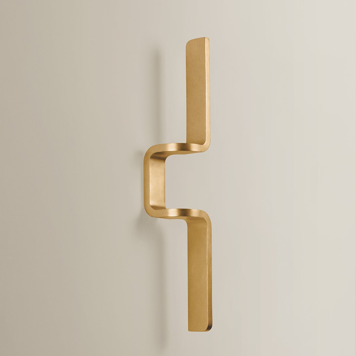 Otherworldly and expressive, the Lazio wall sconce delivers a dramatic wash of light through its serpentine curves. Like a character from an imaginary language, the form makes two fluid, abstract swoops away from the wall. Finished in Vintage Gold Leaf, Lazio can be mounted left, right, or horizontally depending on your preference.