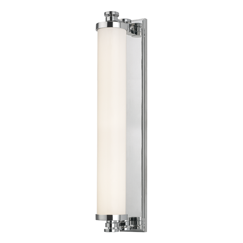 In a vanity setting, Sheridan’s glowing opal glass cylinders swing closer to the mirror for greater light intensity while applying cosmetics or farther apart for broader ambient illumination. Powerful LED lamps deliver bright illumination with a fraction of the energy required by traditional bulbs.
