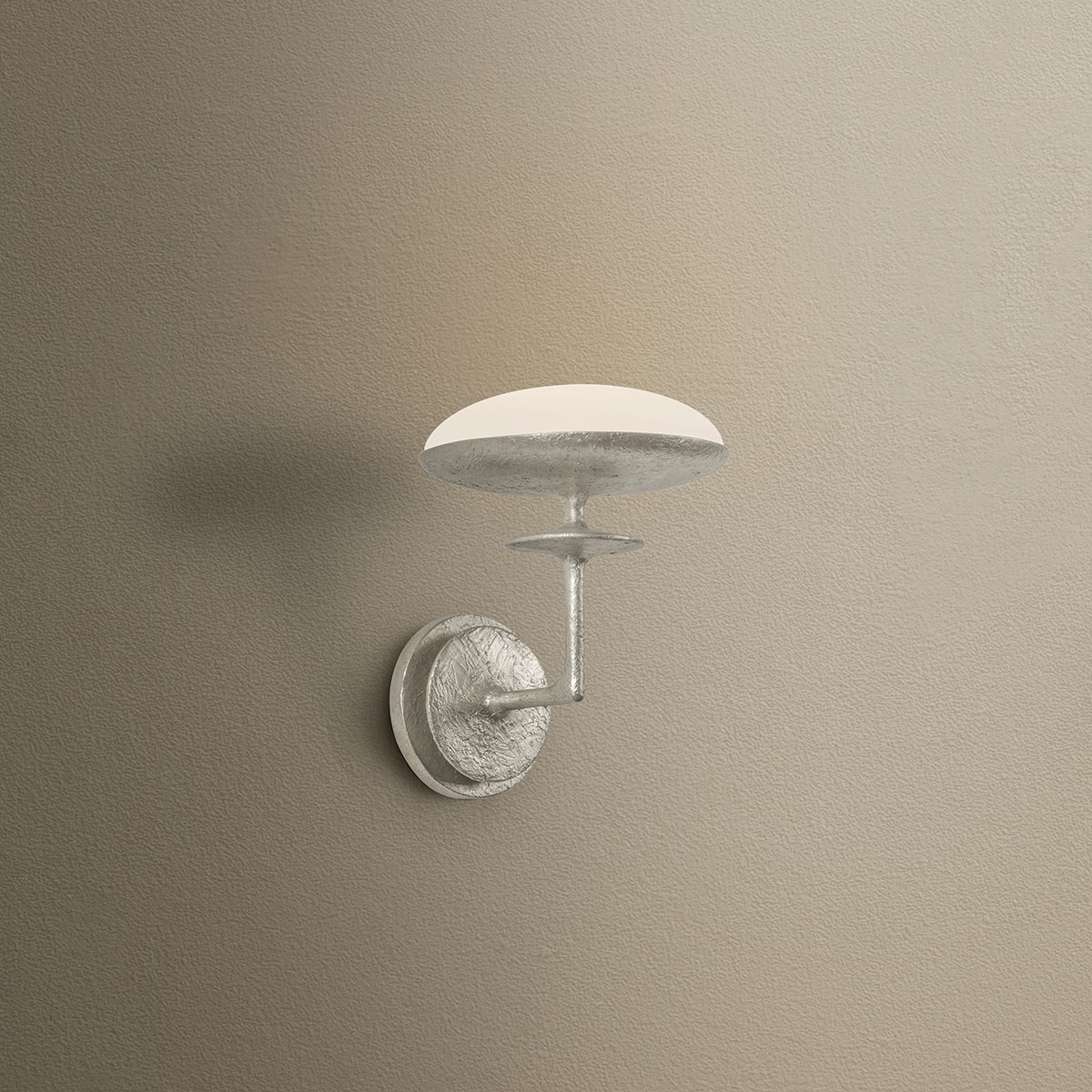 The Pacific family responds to the need for uncomplicated, yet sculptural chandeliers in contemporary interiors. A handcrafted Warm Silver Leaf finish adds texture to the geometric shapes, architectural arches, and decorative bobeches while the etched matte glass shades provide a soft diffusion of light. Available as a 1-light wall sconce, 2-light linear, and 3 or 4-light chandelier, Pacific creates a stunning focal point in any space.