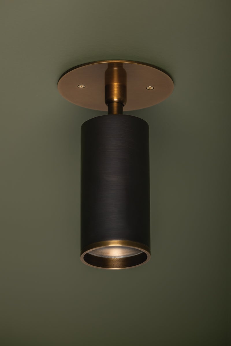 Form meets function in this simple, yet elegant fixture. Caleb serves as a smart alternative to traditional recessed lights, with its modern and sophisticated finish mix of Patina Brass and Bronze. Providing maximum versatility, it can be installed either as a sconce or a flush mount and pivoted to cater to various lighting needs ranging from general to task-specific illumination.