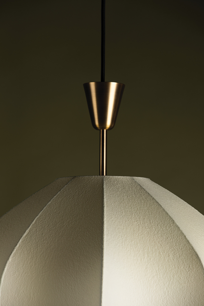 With a nod to Japandi style, Arden is an elevated update to the traditional lantern pendant. The Webbed Fiber shade filters a warm light and allows the inner framework to glow through, creating a look that feels both organic and modern, while Patina Brass accents add sophistication.