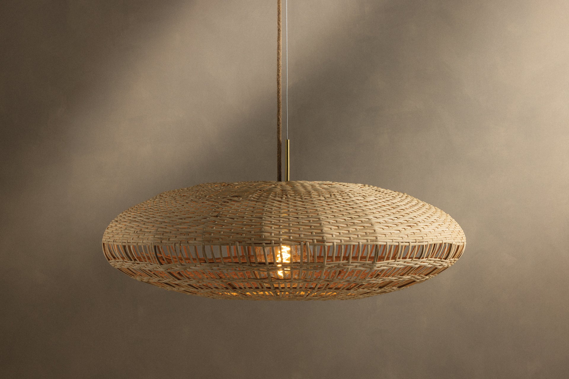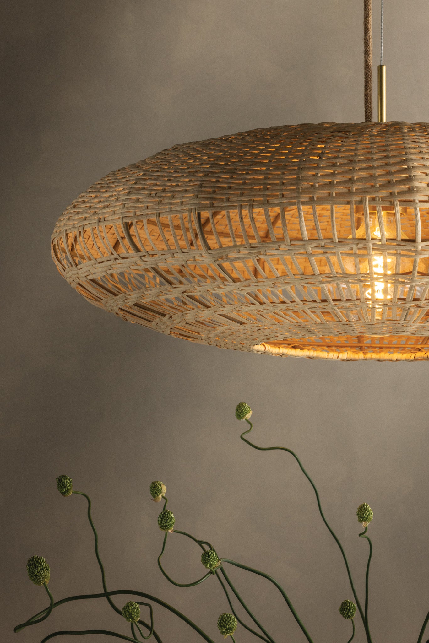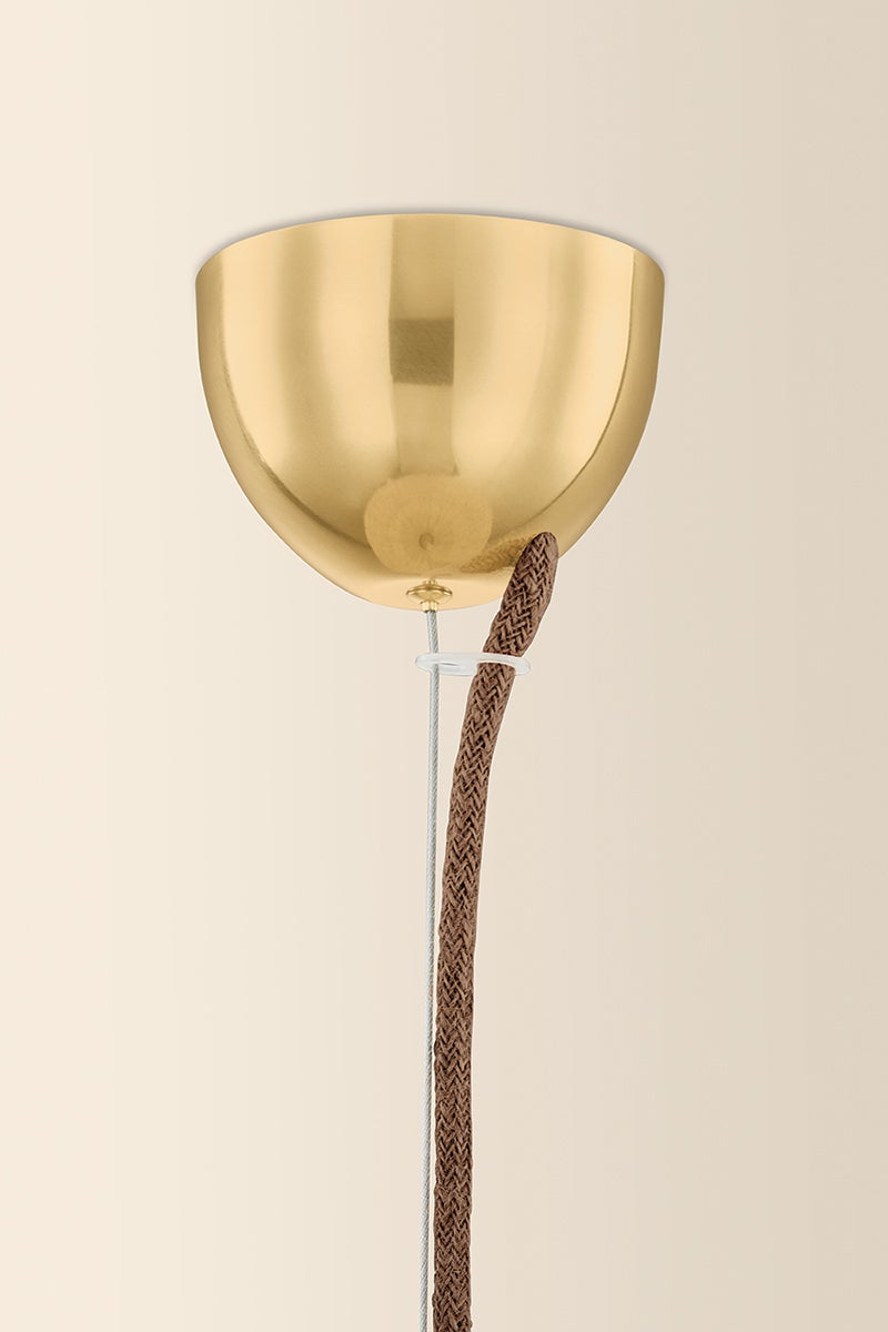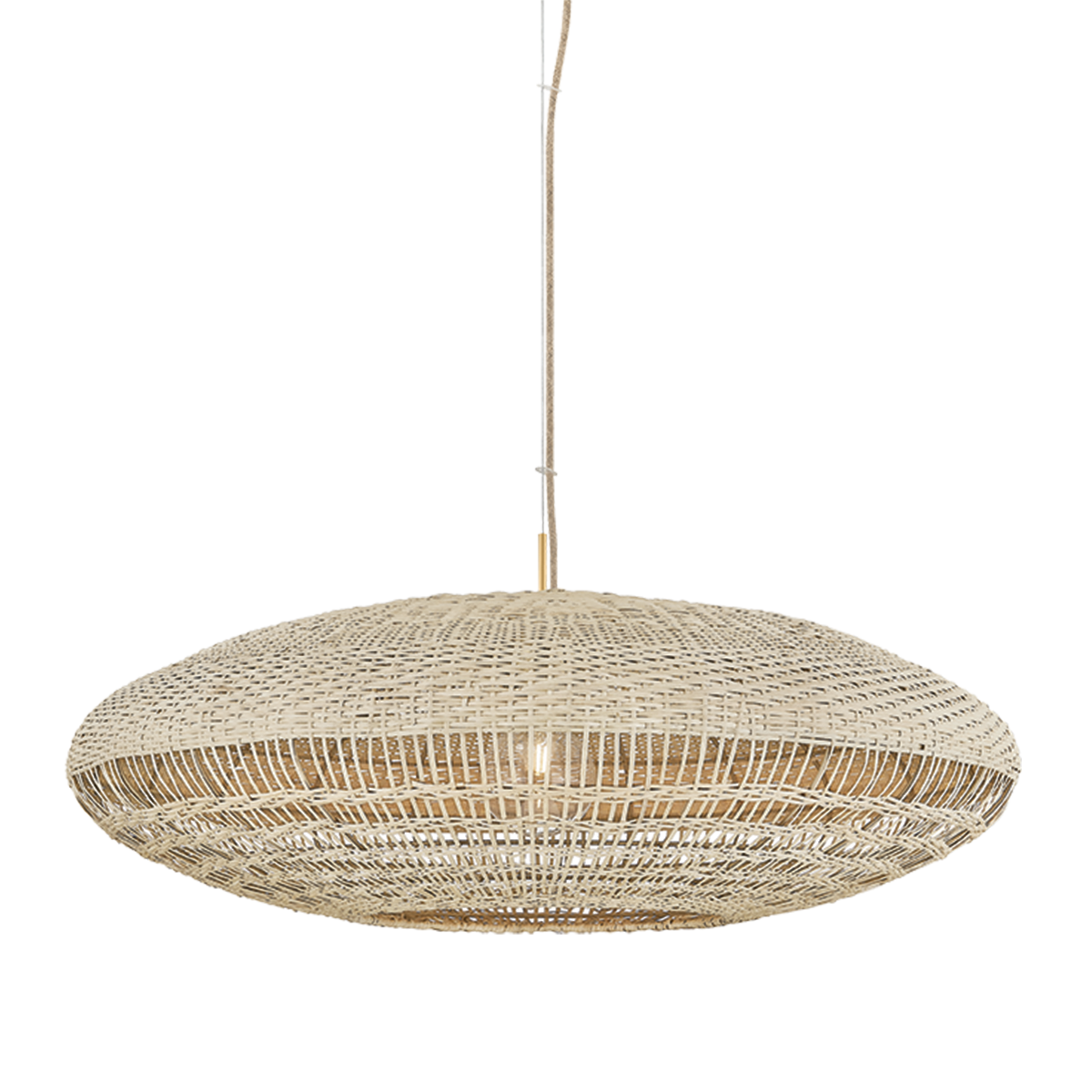 The Erin pendant celebrates the craftsmanship behind a handwoven basket. Suspended from coordinating jute cord, a large oblong natural rattan shade transitions from a tight weave at the top to more loose open layers that allow more direct illumination. Finished with Aged Brass hardware and available in two sizes, this coastal pendant balances its measured construction with contemporary ease. Part of our Hilary Matt x Mitzi Tastemakers collection.