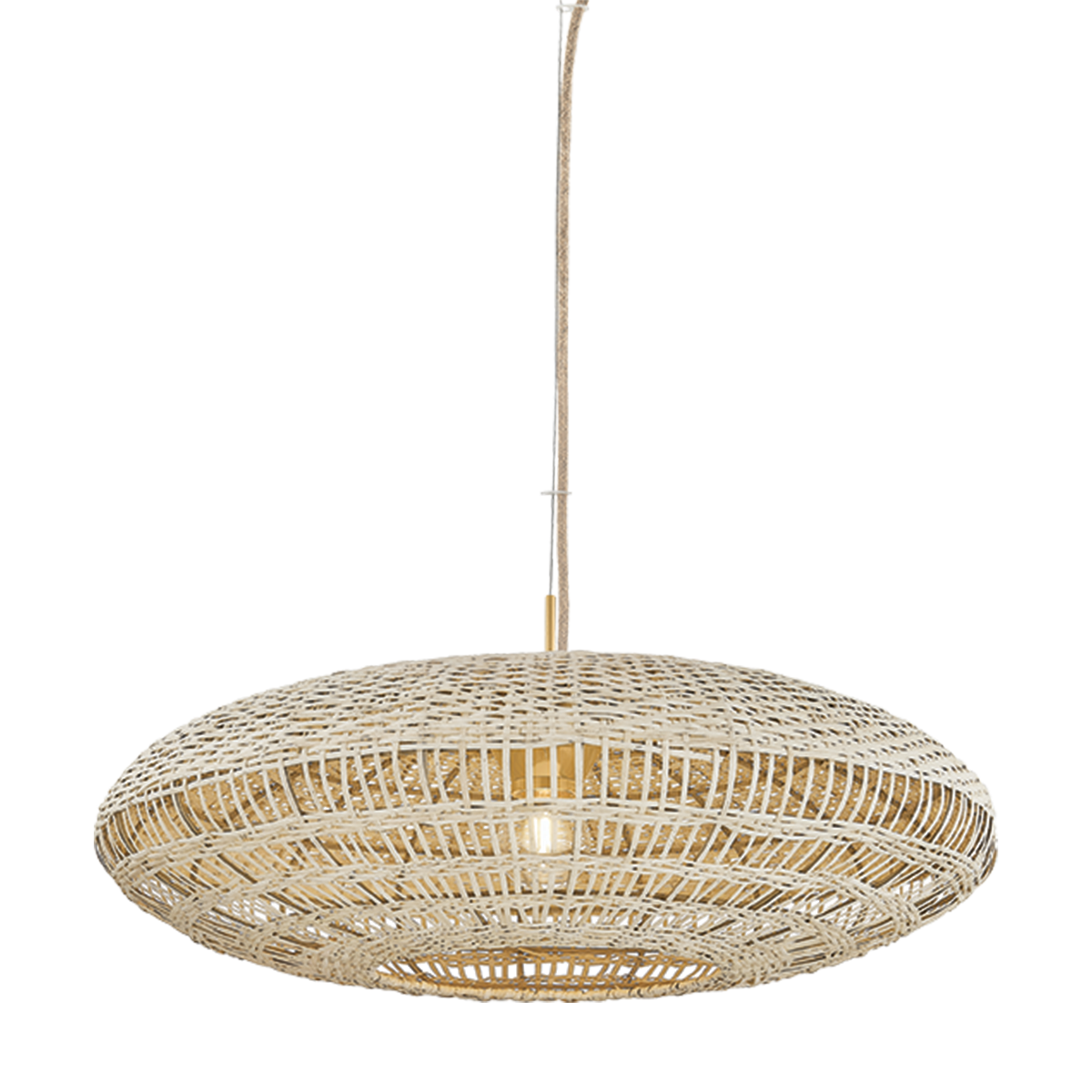 The Erin pendant celebrates the craftsmanship behind a handwoven basket. Suspended from coordinating jute cord, a large oblong natural rattan shade transitions from a tight weave at the top to more loose open layers that allow more direct illumination. Finished with Aged Brass hardware and available in two sizes, this coastal pendant balances its measured construction with contemporary ease. Part of our Hilary Matt x Mitzi Tastemakers collection.