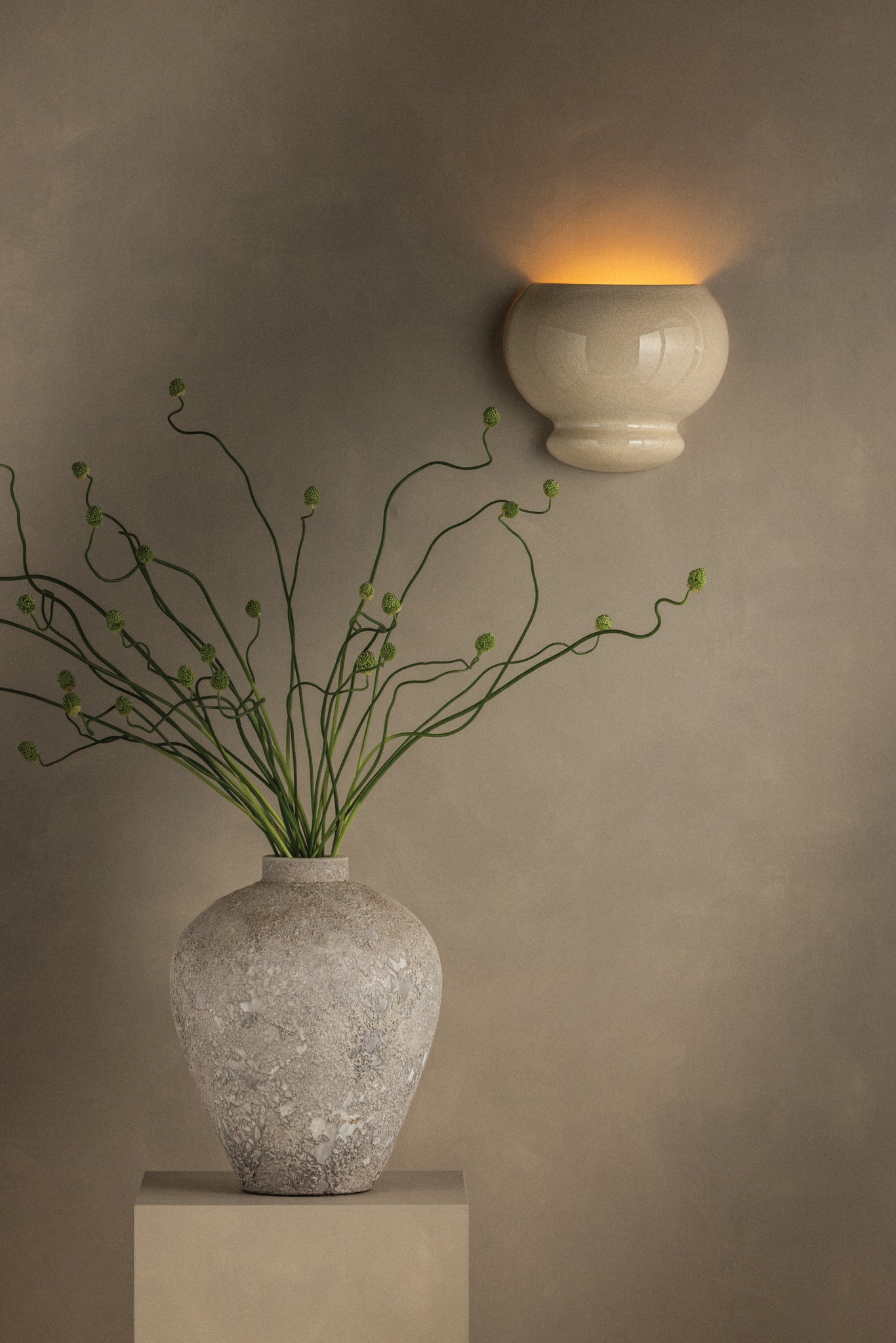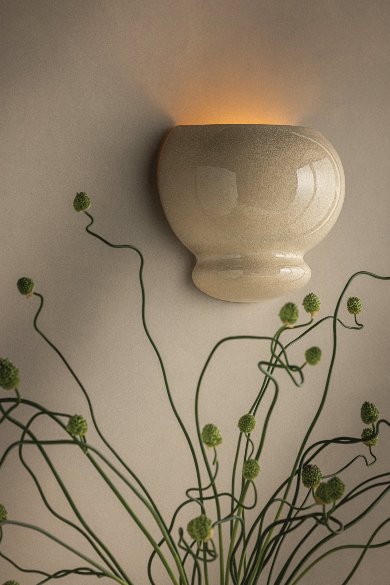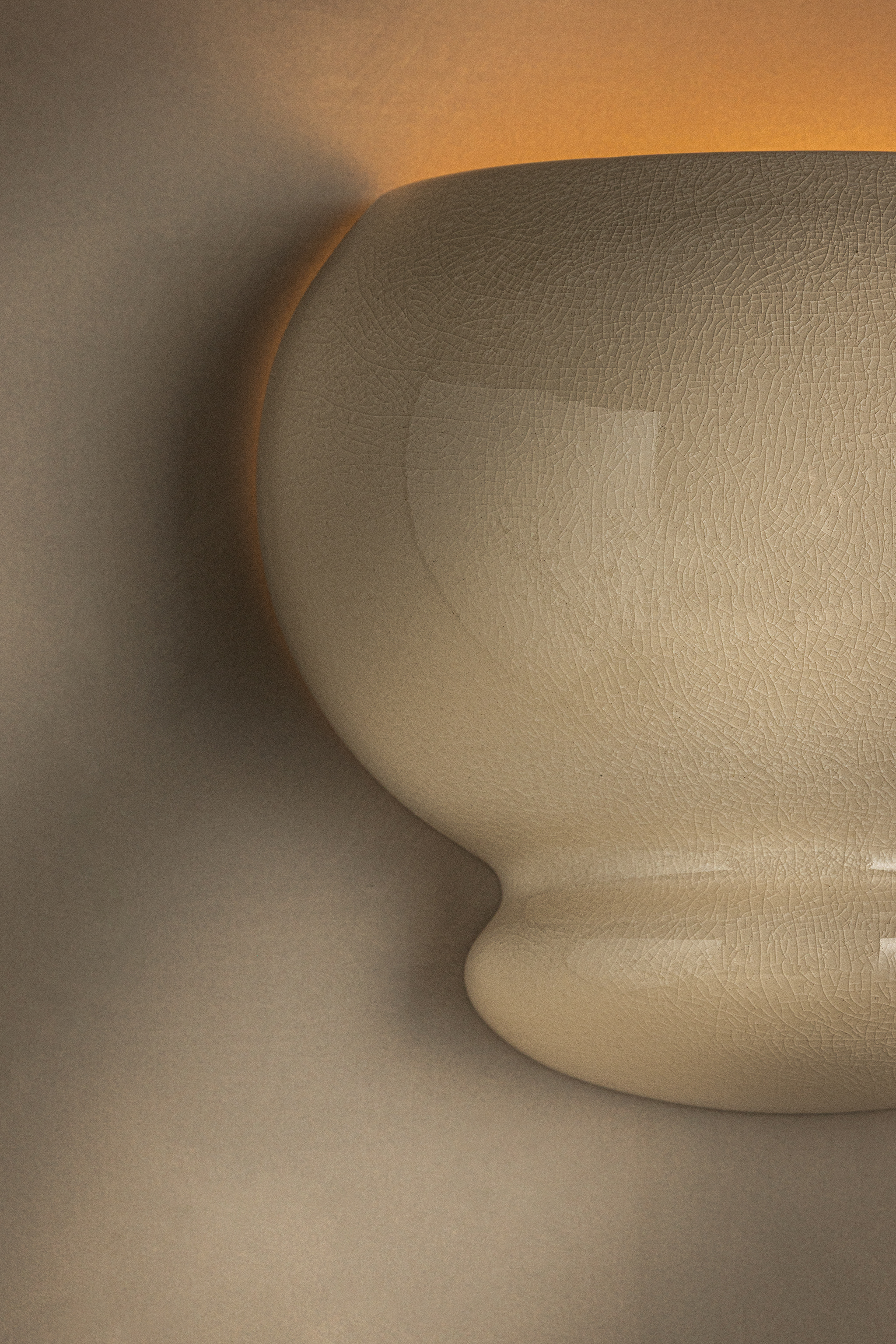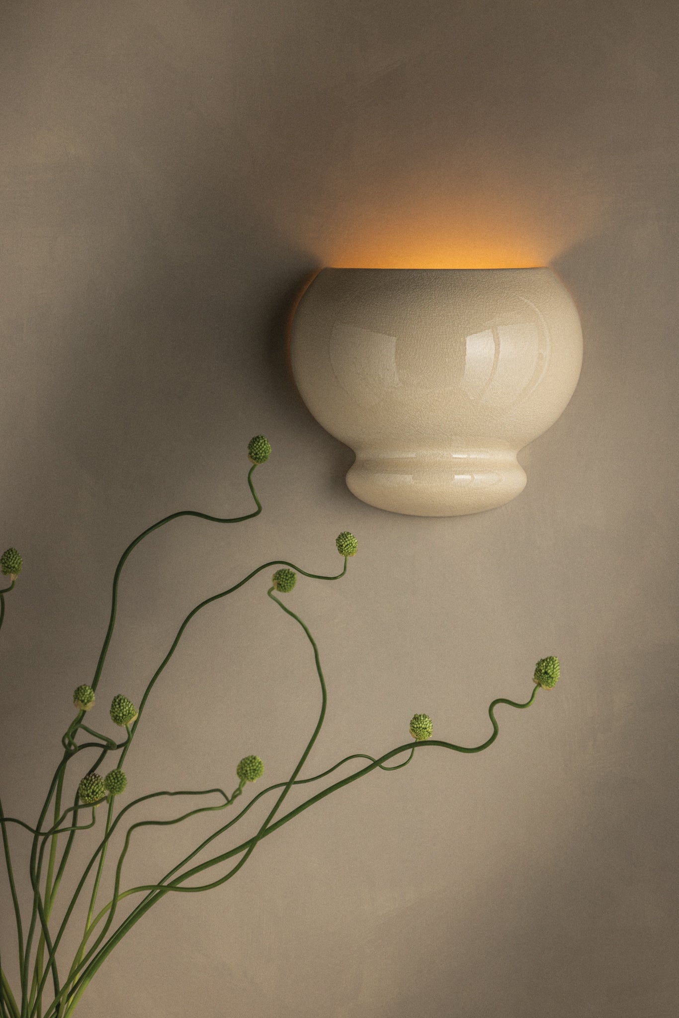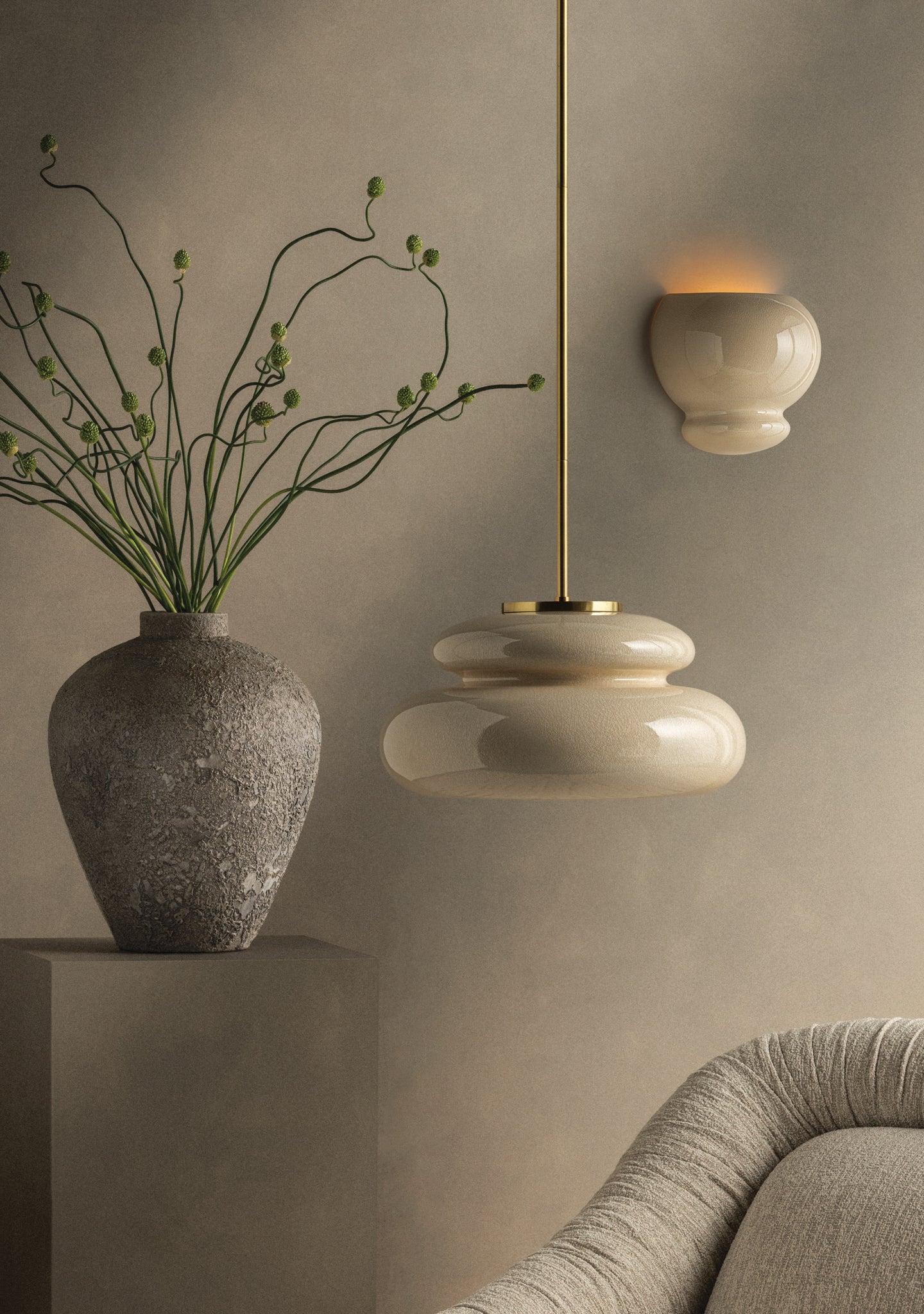 An exploration of voluminous forms and soft, endearing colors, the Pia family leans into the playful side of lighting. Stout proportions, generous curves, and stacked ceramic disc shapes lend an artisanal feel that is enhanced by the Butter Crackle and Chateau Crackle finishes. The table lamp is topped with a classic white linen drum shade, while the pendant, flush mount, and wall sconce cast light through a large oculus. Finished with Aged Brass hardware, this family adds artistic visual interest to any space. Part of our Hilary Matt x Mitzi Tastemakers collection.