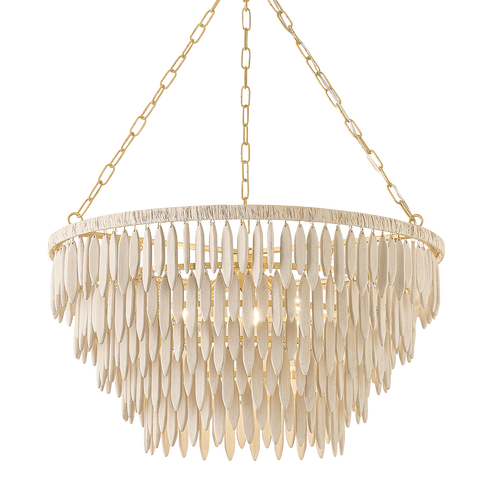 Like sunlight filtering through leaves, the Tiffany family scatters light across a space. Slender whitewashed wooden beads cascade in tiered rows, creating a play of texture and shadow. Wrapped in white raffia, the ring frame enhances the coastal feel, while the Aged Brass hardware adds a note of polish. Available as a semi-flush mount, pendant, or chandelier in two sizes.