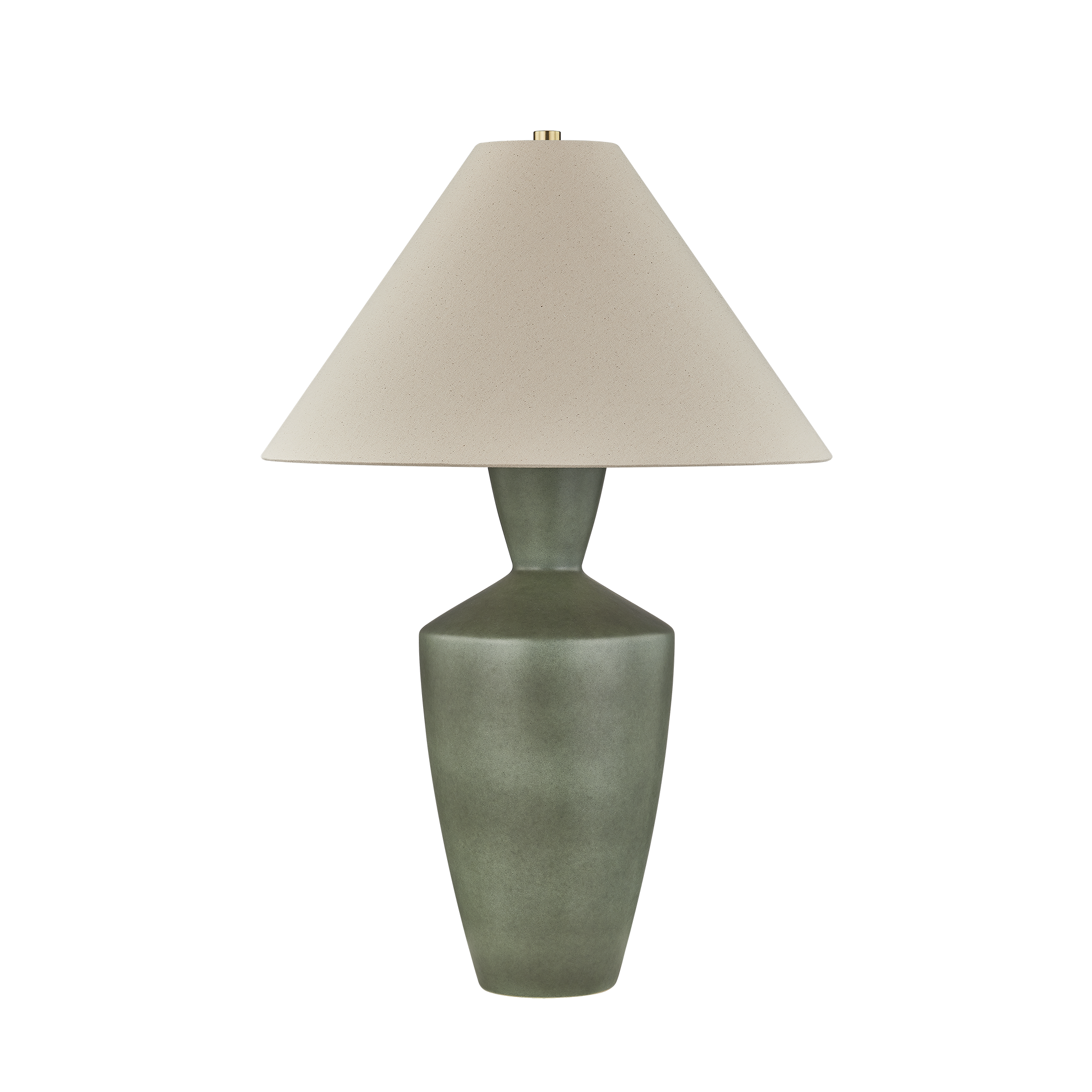 The Hartley lamp brings the calm of nature indoors. A softly angular ceramic base is finished in an Amphora glaze that is evocative of moss and stone. Paired with a wide wheat linen shade and Aged Brass hardware, it makes for a refreshing accent piece.