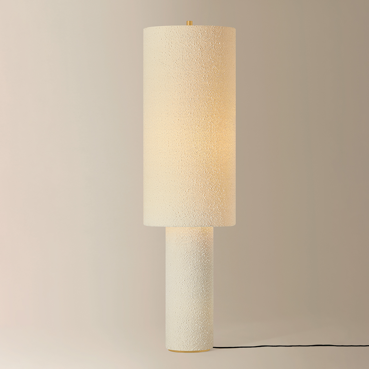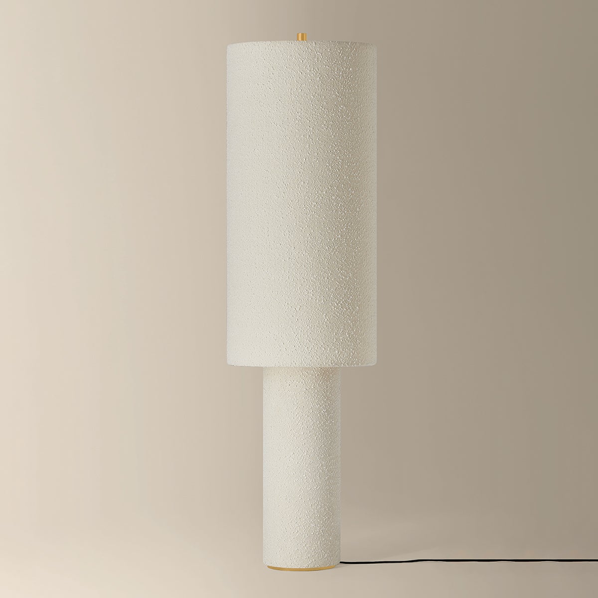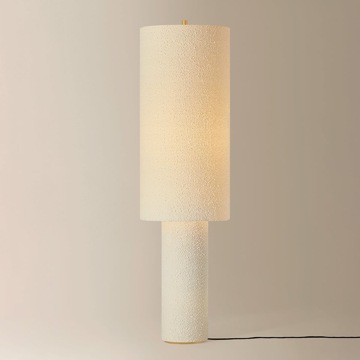 The all-over soft ivory boucle of the Sam family of lamps creates an inviting addition to modern interiors. As a table lamp, Sam makes a minimalist statement on a sideboard, while the floor lamp warms up a bedroom or reading nook with ease. The playful vertical proportions of both the table and floor lamp make them ideal for more narrow spaces. Concealed Aged Brass hardware lends a luxe finish to both of these textural lamps. Part of our Hilary Matt x Mitzi Tastemakers collection.