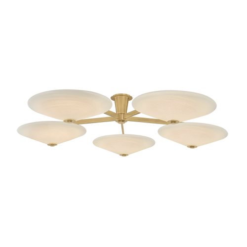 Duo is full of singular style. Elongated shades in white Belgian linen spread out from curved arms of aged old bronze. The stretched shades add visual interest and allow the light's soft glow to extend even further. The three-light chandelier mounts close to the ceiling and the two-light articulating plug-in wall sconce swivels left to right and tilts up and down.