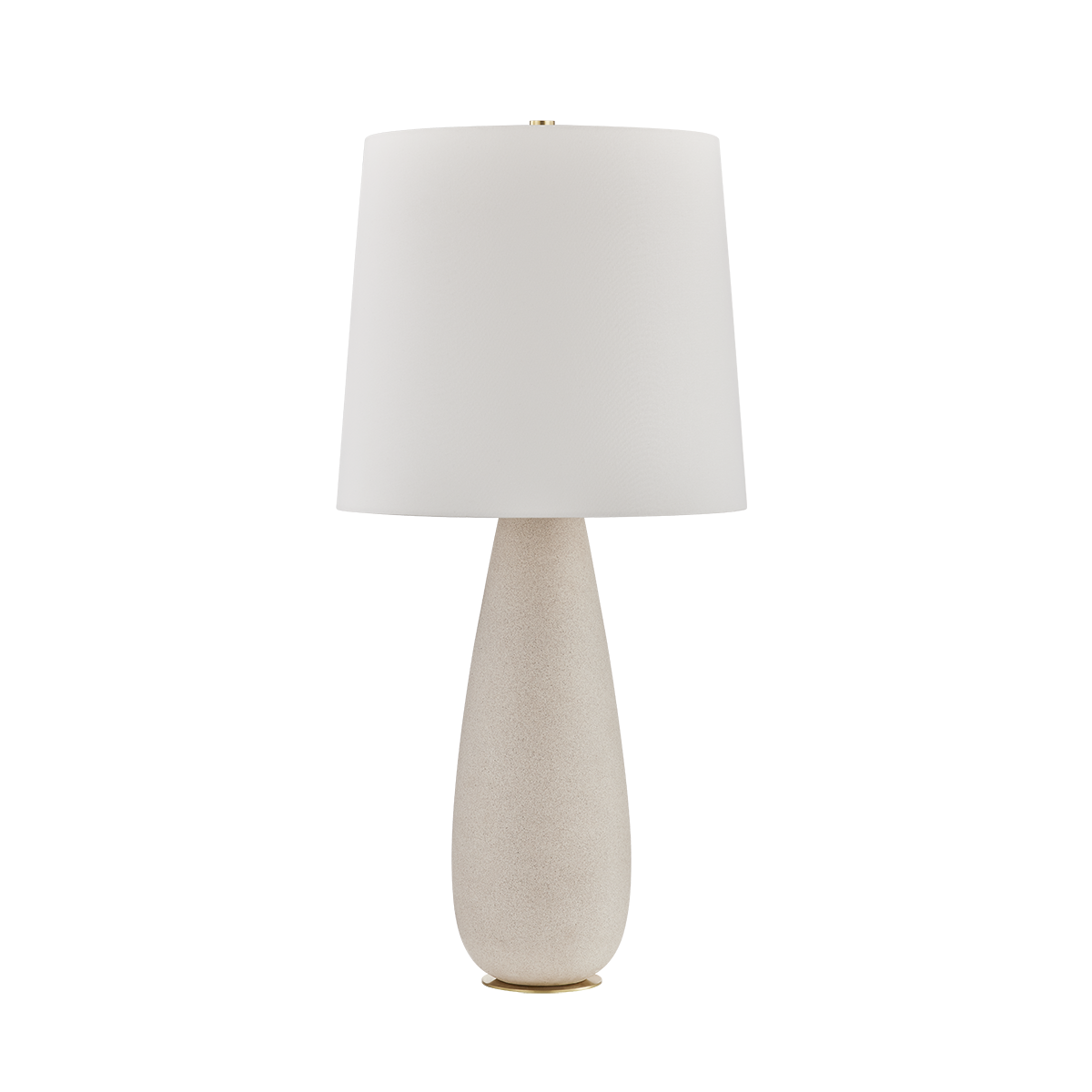 The Neelytown table lamp brings high design aesthetics to earthy interiors with an elongated silhouette and textural finish. With all-over speckling, the Textured Edgecomb glaze recalls the look of natural stone on the base. An oversized white linen shade and Aged Brass hardware let the ceramic finish remain the center of attention in this serene lamp.