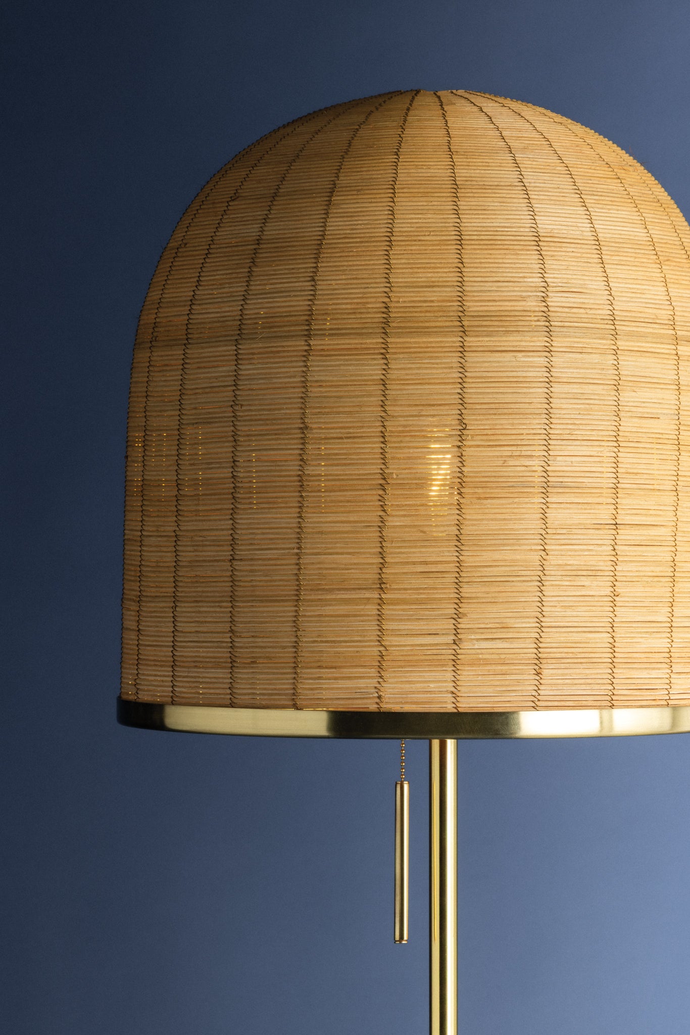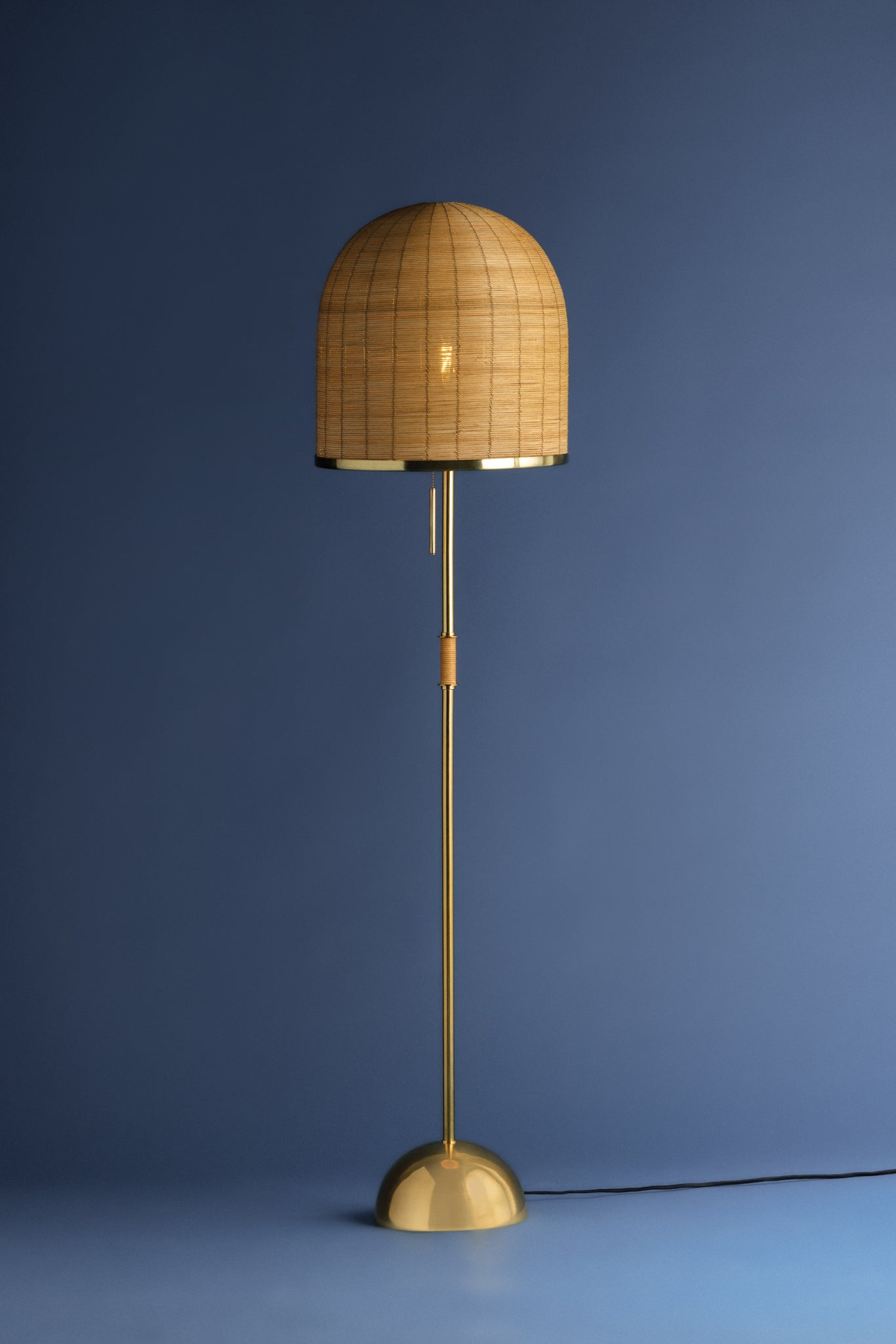 Celebrating the beauty of Indian craftsmanship, the Darfield floor lamp makes a statement with a handwoven natural rattan shade in a trend-forward mushroom shape. A long, slender base finished in Aged Brass completes the fixture. Place Darfield in a living room or home office for a dose of earthy style.