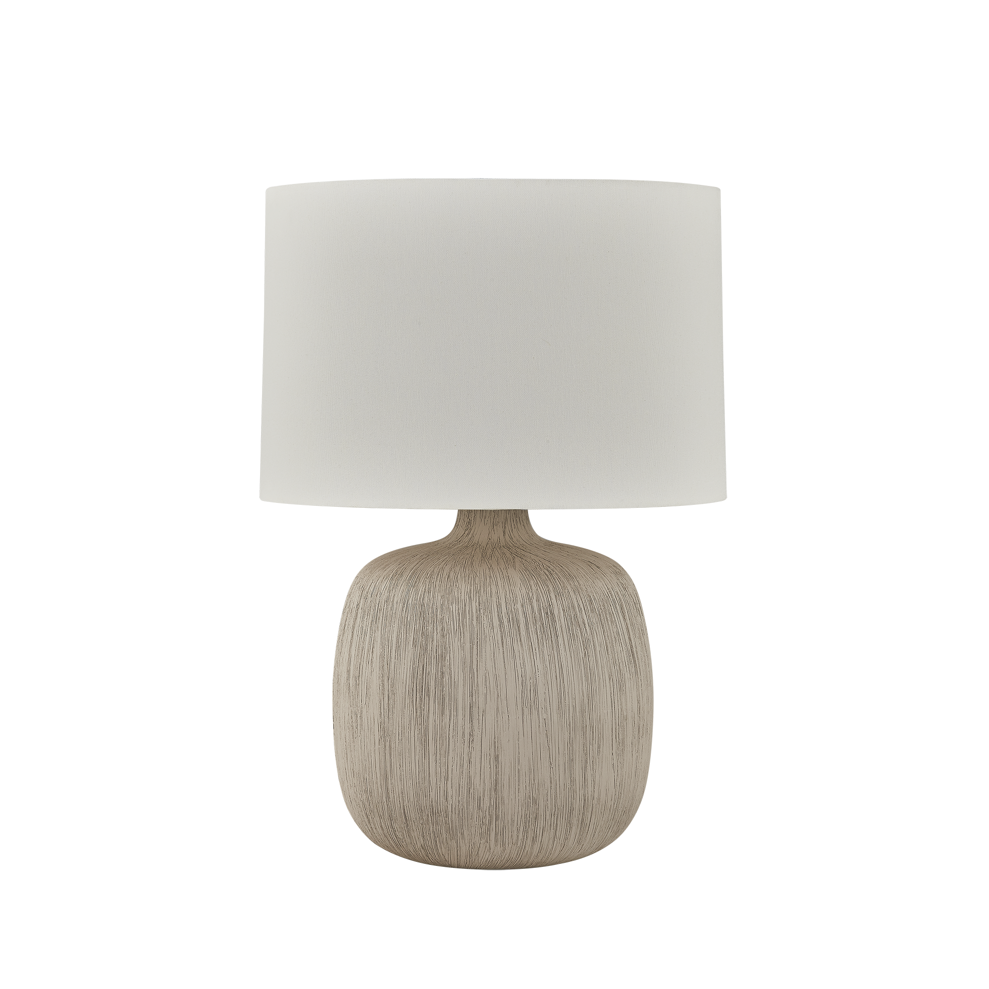 Keagan is defined by quiet texture and a soft, sculptural form. The ceramic base features a Stria Wheat glaze across a rounded silhouette. Paired with an off-white linen shade, this lamp exudes a tonal simplicity that feels both modern and timeless. Patina Brass hardware at the neck completes the design with understated warmth.