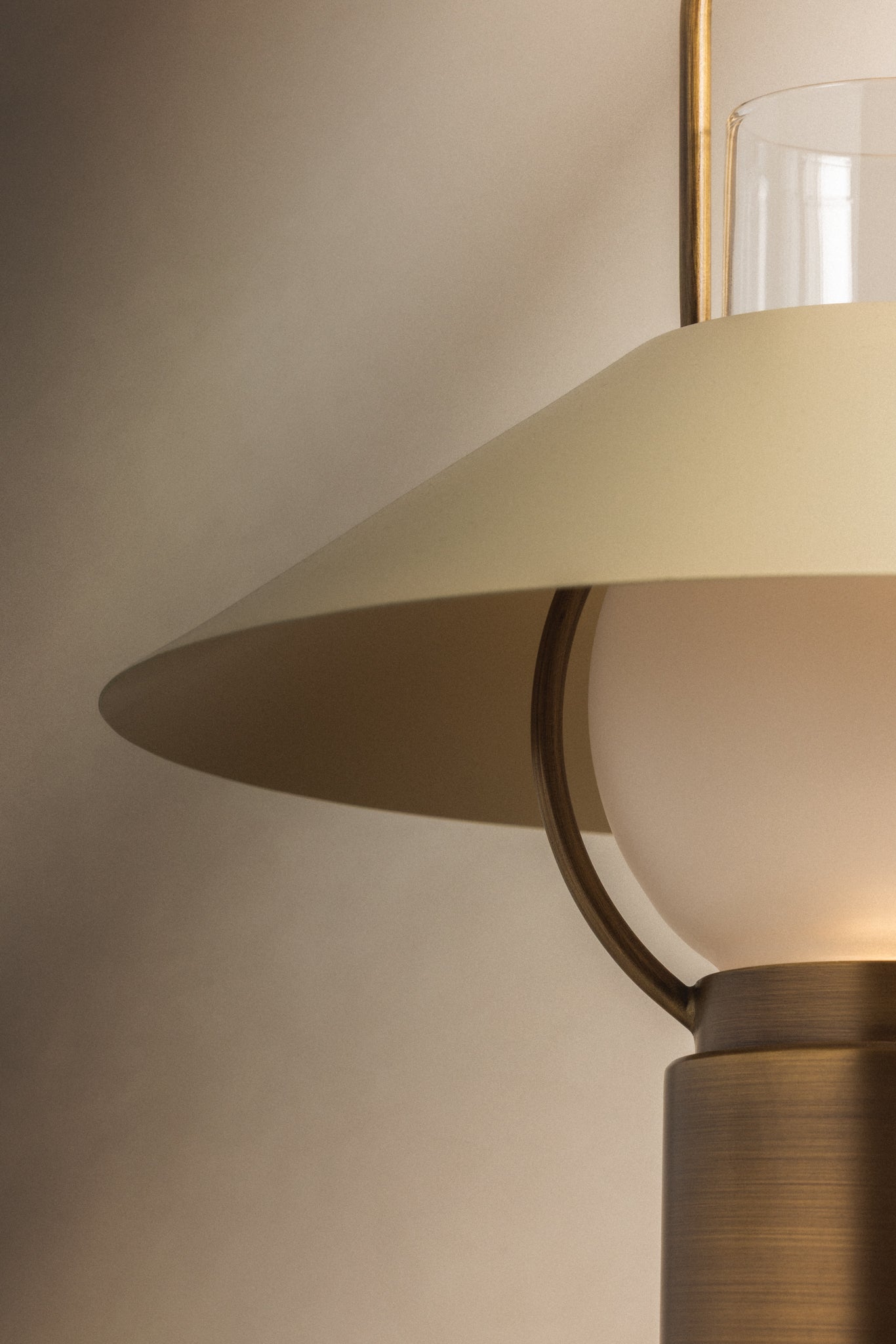 Designed for life in motion, Kindle is a versatile rechargeable lamp with a vintage-inspired silhouette. A Soft Sand shade, etched clear glass, and Patina Brass details lend a warm, artisanal prescence, while the carry handle adds function and charm. At 14.5" high, it's perfectly sized to move effortlessly from room to garden—bringing light wherever it's needed most.