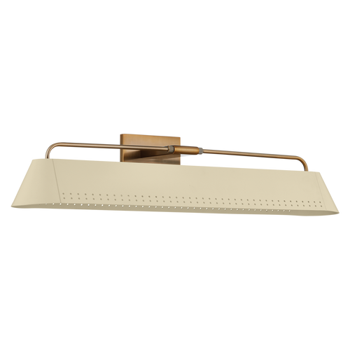 In a tapered racetrack shape, Rowan provides a sleek option for lighting a wall or picture. Small perforations along the shade enable an increased wash of light while also adding a decorative accent to the Soft Sand shade. Rowan is available in two sizes with a Patina Brass finish.