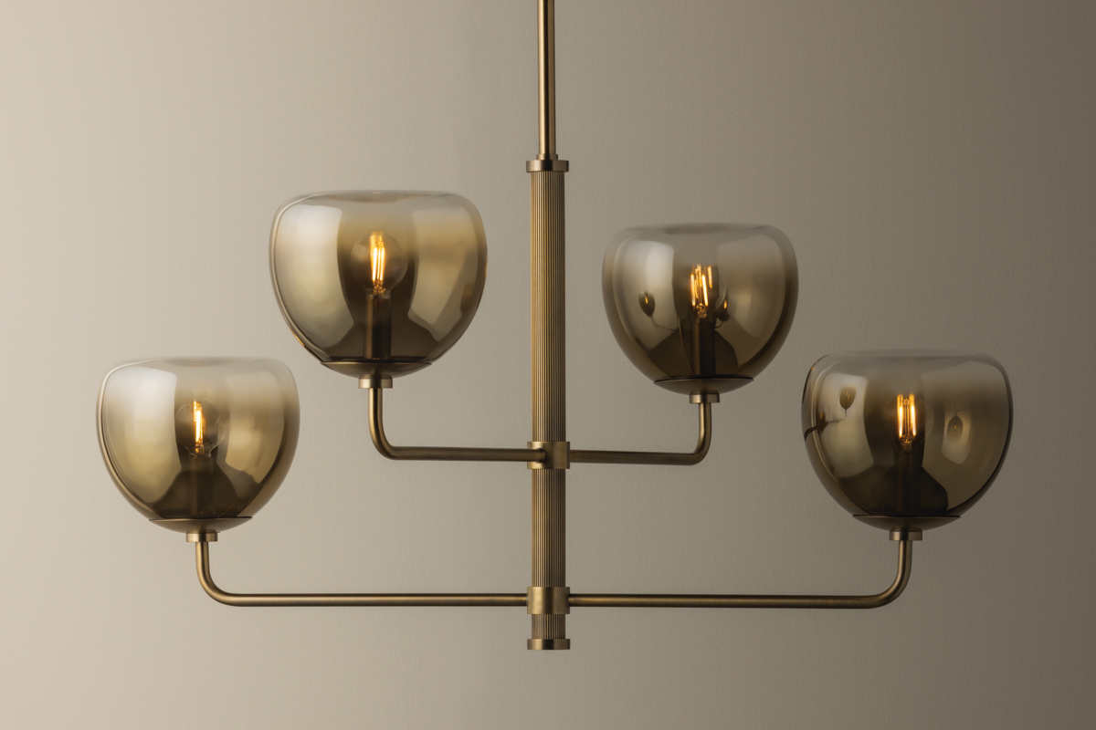 If you’re looking to add warmth to your space, try adding a fixture with a smoke or tinted finish. A smoke finish is achieved by spraying on and then baking a tinted finish on top of clear glass while a tinted finish comes from using colored glass from the beginning of the process. Both finishes will provide a warm glow and an added layer of visual interest.