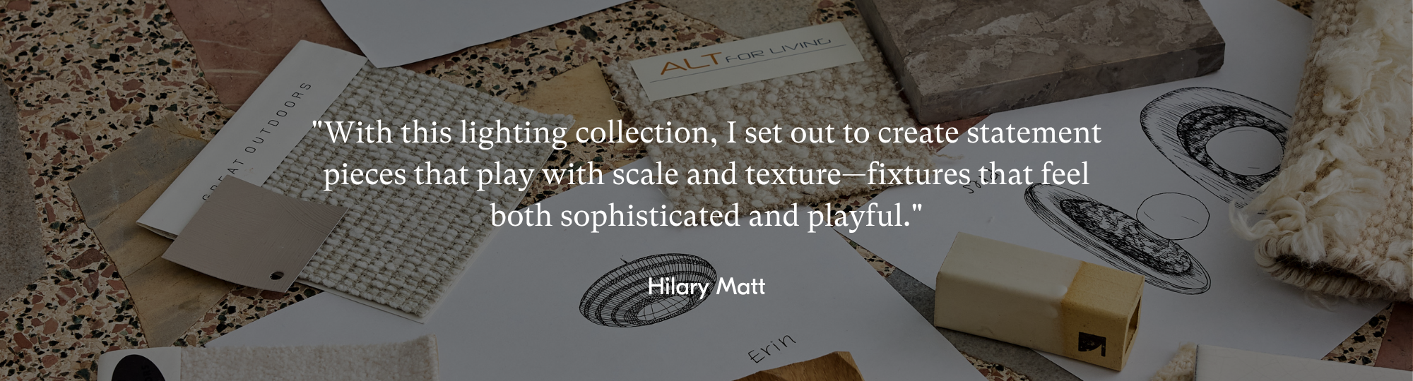 New York-based designer Hilary Matt brings her signature blend of bold form and effortless livability to her debut Mitzi Tastemakers collection. Known for interiors that balance post-modern edge with relaxed minimalism, Matt creates spaces grounded in texture, proportion, and a sense of comfort. The collection reflects that same philosophy—sculptural lighting designed to feel both expressive and easy to live with.