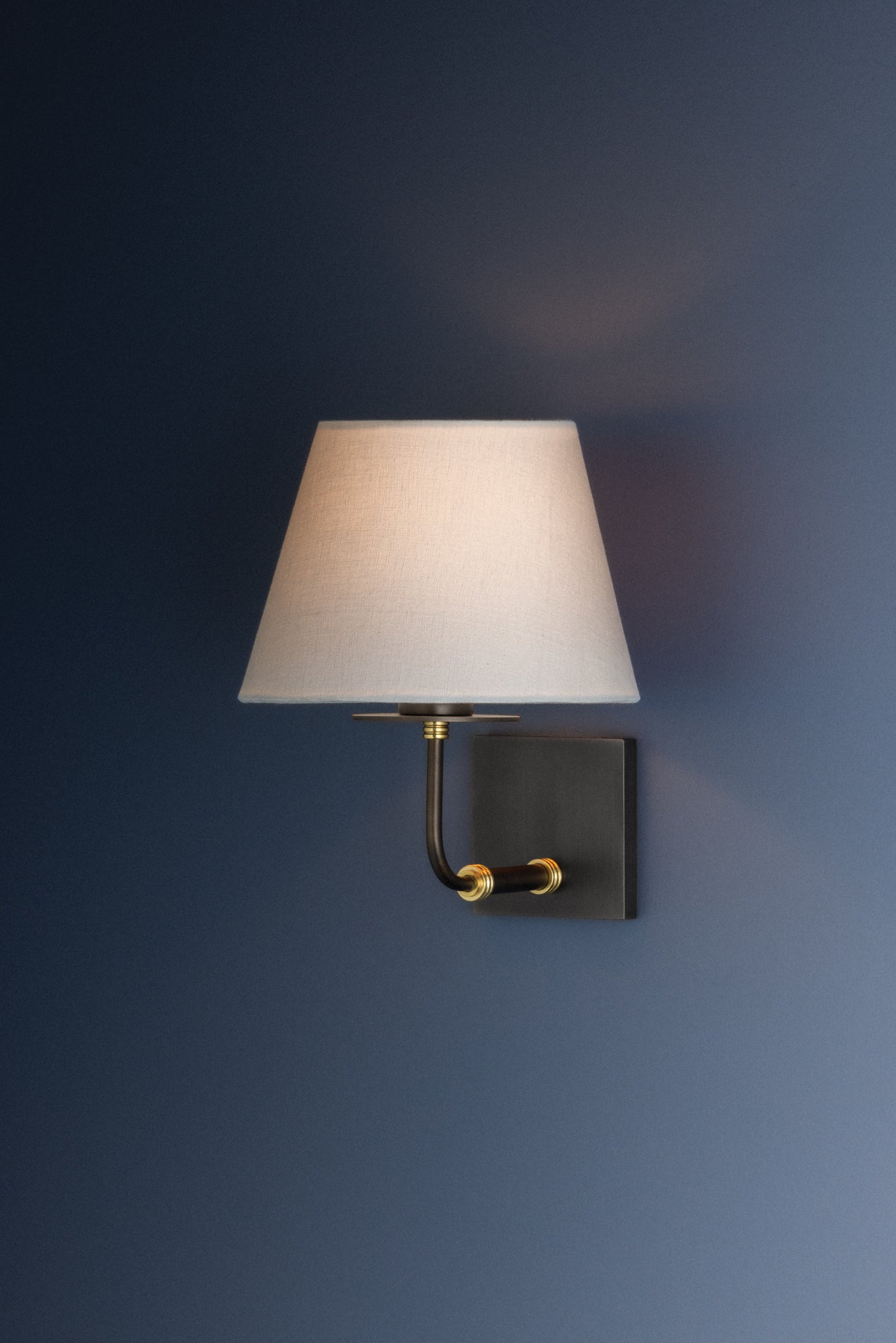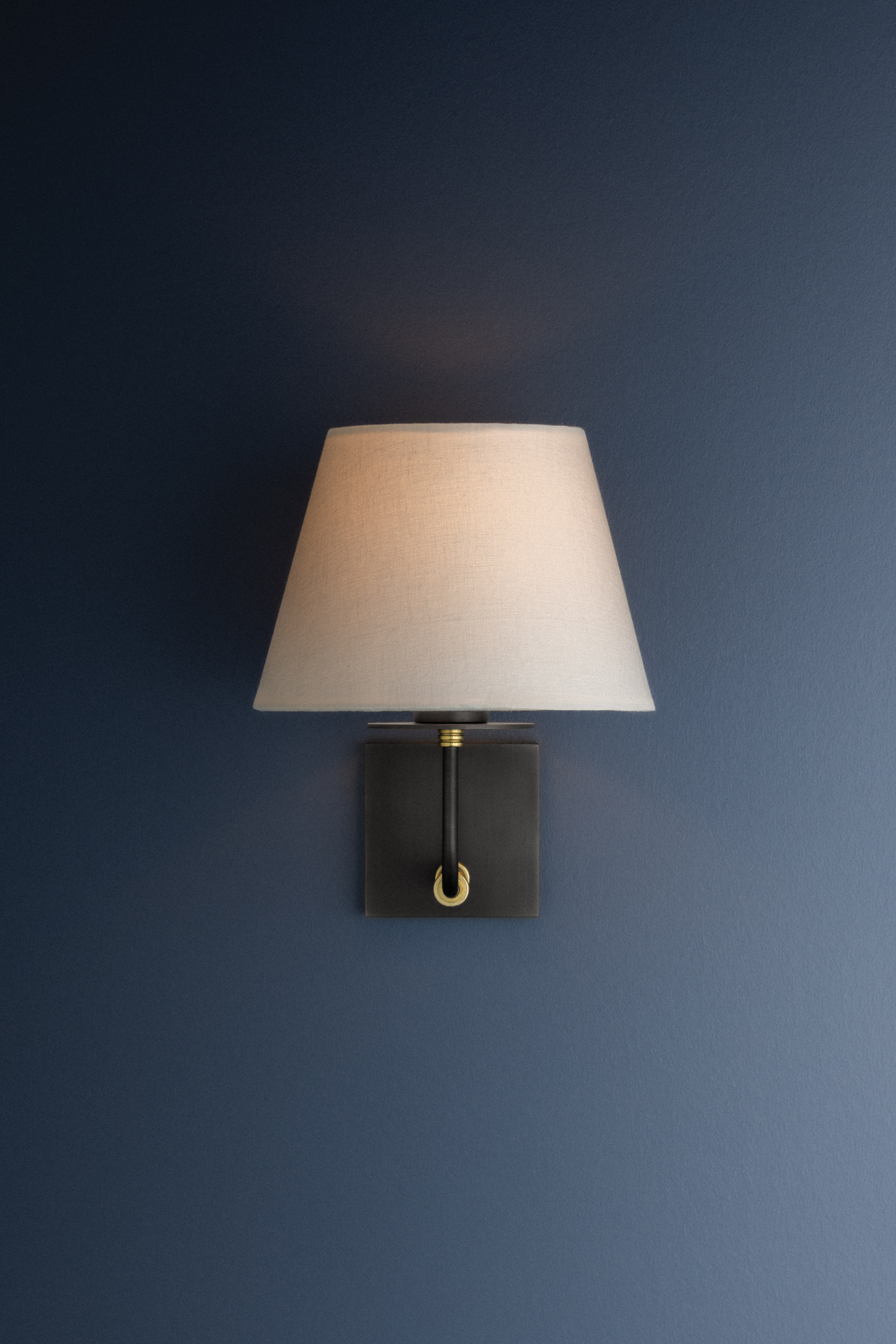 Inspired by modern mechanics, the Crown Heights family features exposed connection points with eye-catching mixed metal finishes. The slender metal frame is finished in Dark Bronze with lighter Aged Brass racetrack accents that speak to the design’s industrial signature. Crown Heights is available as a wall sconce, a 2-light island pendant, and a 4-light chandelier.