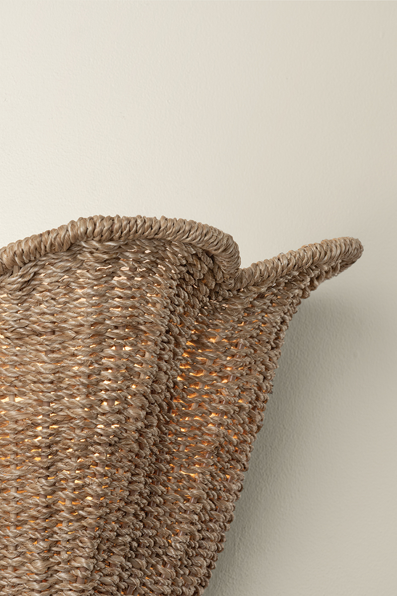 The Ardonia family pairs two trending design elements, scallops and naturals. Woven tightly from abaca fibers, the upward-facing tapered bowl shade has a petal-shaped edge to resemble a flower in bloom. The Vintage Gold Leaf frame is accented by an abaca-wrapped rod suspension, which points to the skill of the artisan craftsmen. Available as a 2-light sconce and a 4 or 6-light chandelier, this family is a breath of fresh air.