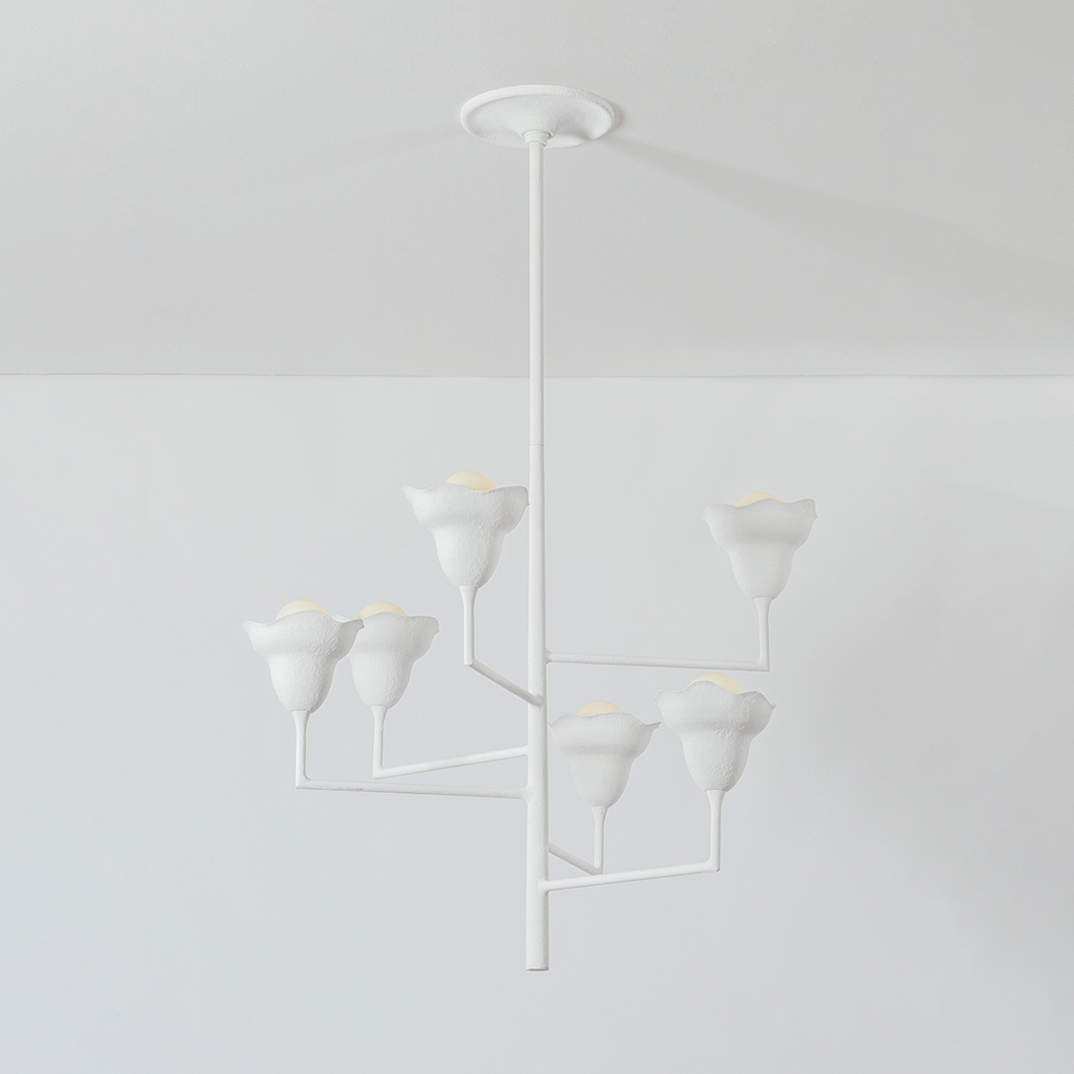 Architectural and sleek, but with an artful, botanical flourish, Alora has strong modern design appeal. While the framework features clean lines and right angles, the scalloped floral shades have an irregular, hand-sculpted quality. A textural relief pattern on the surface of the shades adds visual interest. Alora is available in multiple formats and 3 finish options.