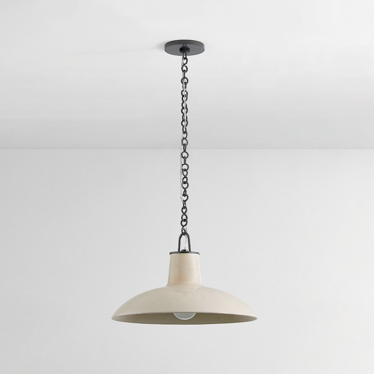 Taking cues from mid-century fixtures, the forms of the Pottersville family are kept intentionally simple to serve as canvases for the dynamic glaze techniques of highly skilled Vietnamese potters. The graphic yet subdued glazes impart a highly artisanal feel, bringing artistry into a kitchen, hallway, or bedroom. Pottersville is available as a pendant in two sizes and a 1-light wall sconce.