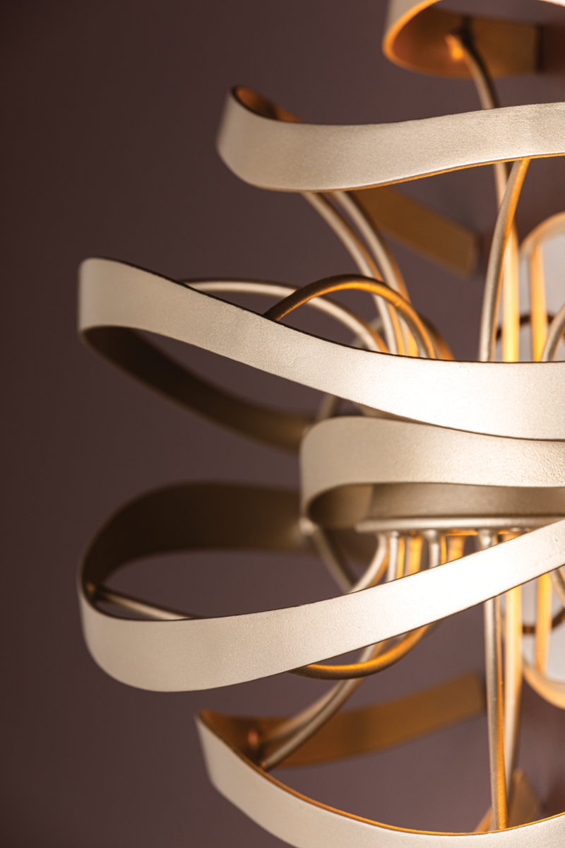 An airy and sculptural interpretation of the art of exquisite hand lettering, Calligraphy evokes swirling script flowing across the page – as if right from the artist’s instrument. At its core are two powerful LED light engines surrounded by floating bands held in place by thin, curving lines.