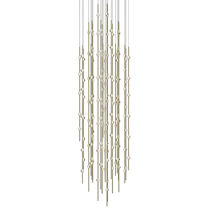Celestial imagery meets modern technology in the Constellation® family. LED hubs are fastened along linear strands of various lengths like beads on a necklace. These are suspended in distinctive configurations, creating powerful luminance within a vertical space. Constellation® is available in nine distinct styles with limitless configurations. Choose from crystal facets or soft white lenses, with metal finishes of Satin Nickel, Espresso Black, or Satin Brass.