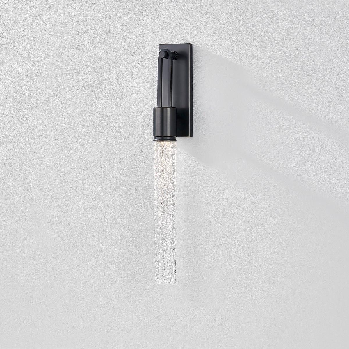Illuminated by energy-efficient LED lighting, this contemporary sconce features clear-seeded glass that mimics bubbles suspended in a tube of water. The innovative design plays with the concept of hanging the glass from an extended loop. The light elegantly dangles from a decorative hook, creating a visually captivating effect. Available in Aged Brass or Distressed Bronze finishes, Raynham blends clever design-forward innovations with modern style.
