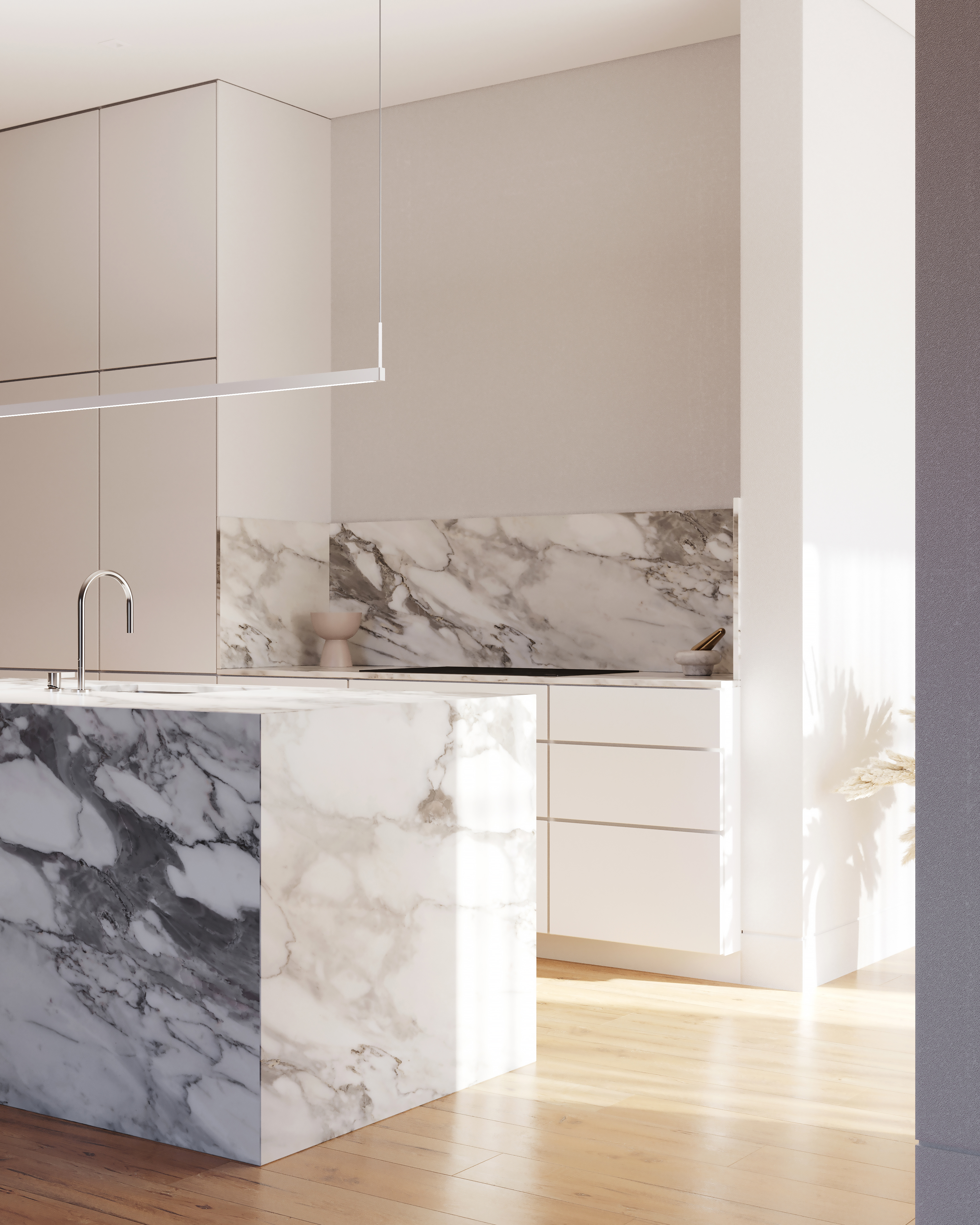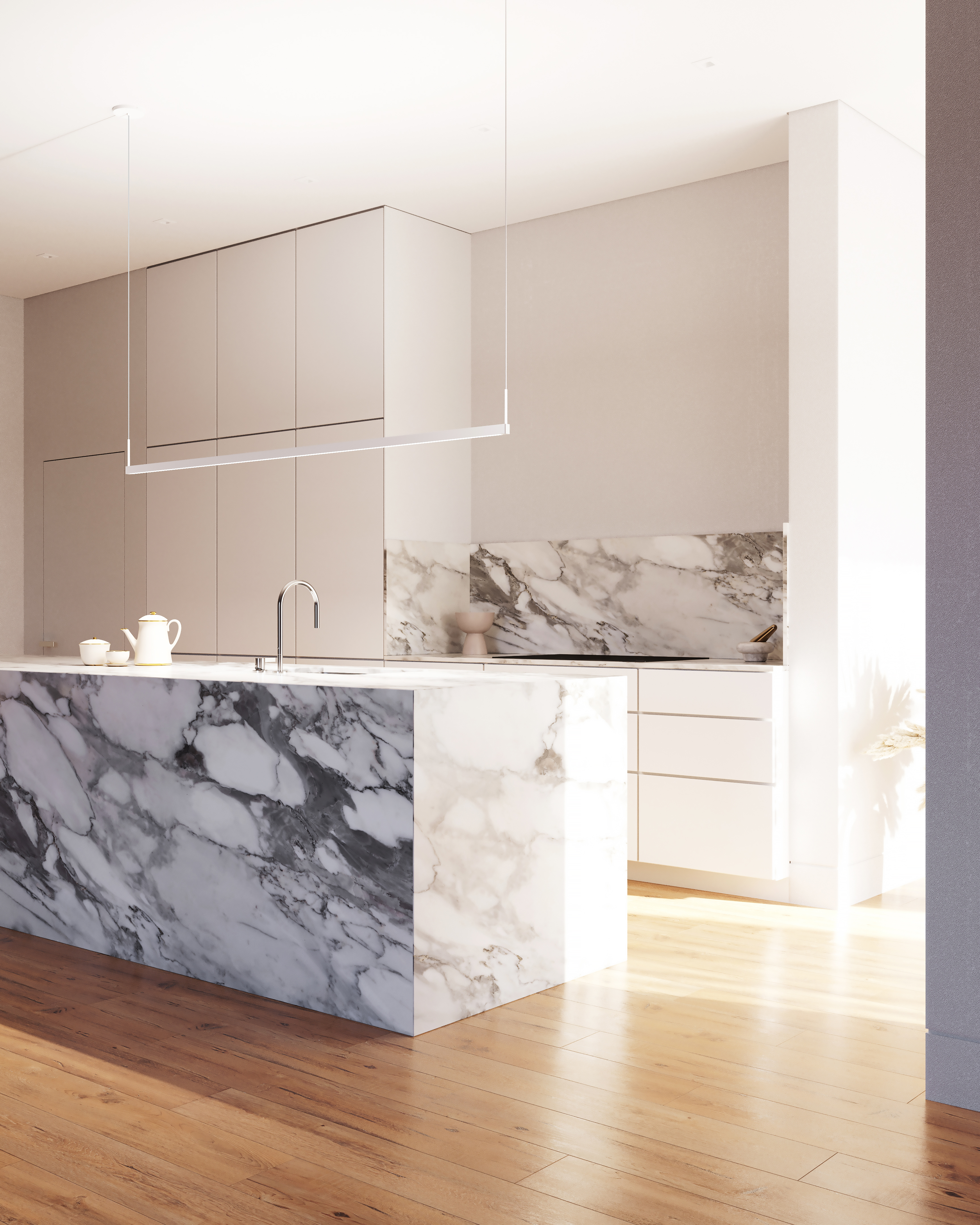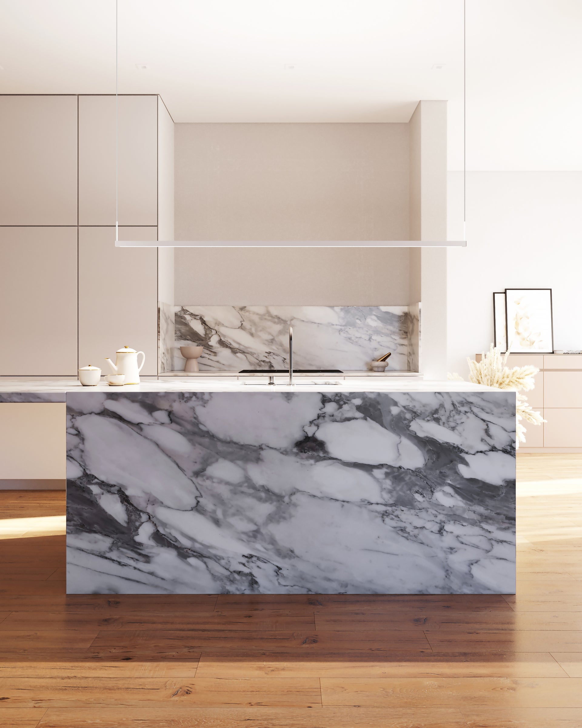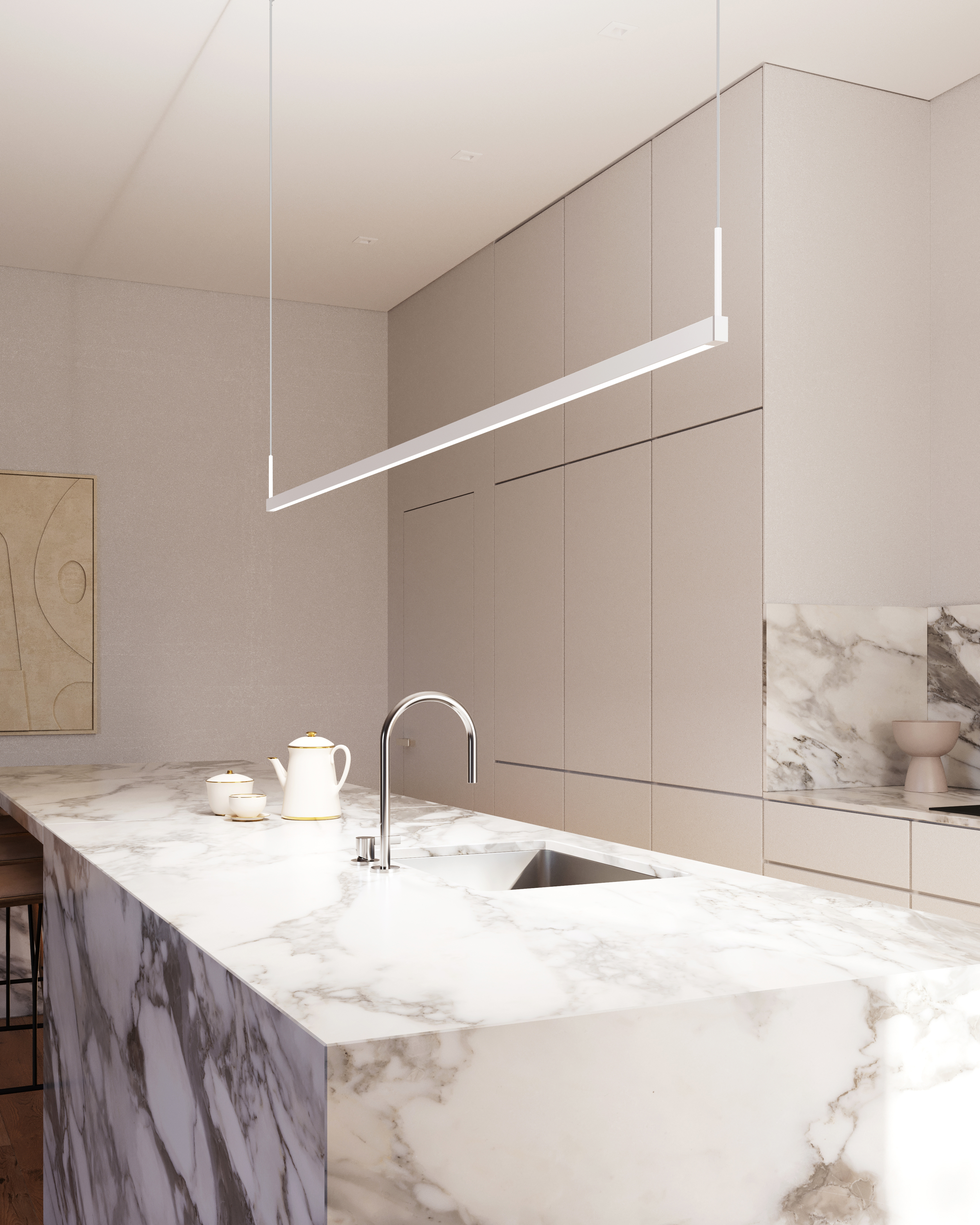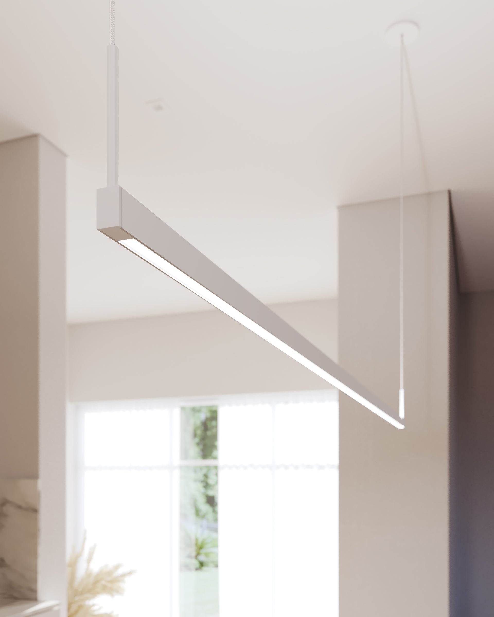 The Thin-Line™ family leans into minimalism with bold angularity. The result is a series of suspended metal bars with integrated LED. To eliminate glare, the light is cast against the wall in its sconce format, which is available in five sizes. Thin-Line™ also comes as a pendant in five sizes. Finish options include Satin White, Satin Black, and Bright Satin Aluminum.