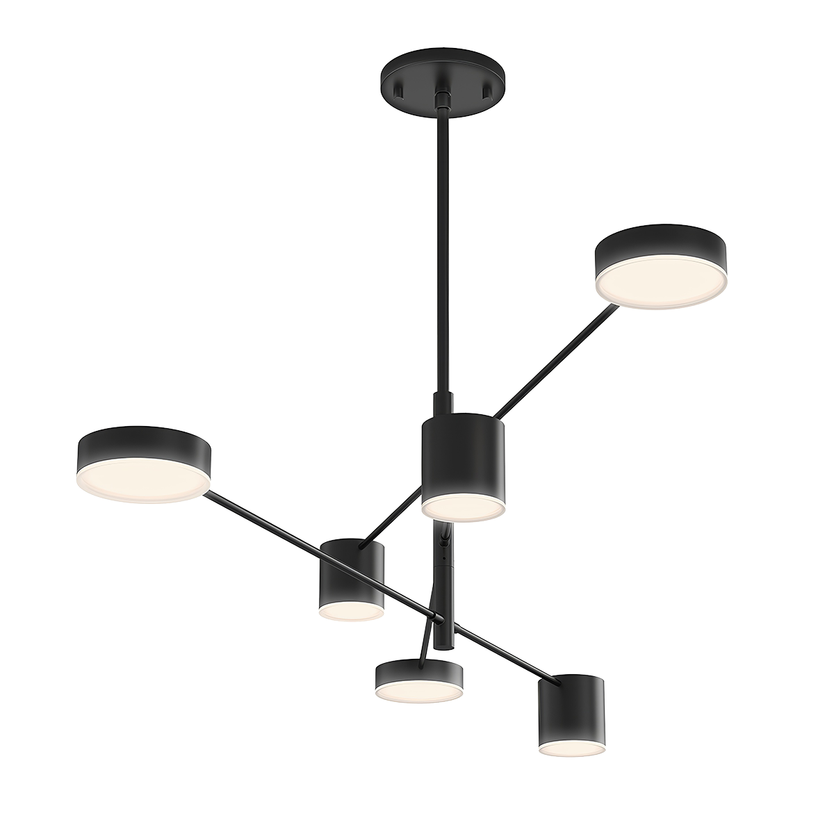 Flat disc and deep cylindrical forms, of different visual weights in juxtaposition to each other, are counterbalanced on offset slender arms in a rotating system of mass. Dramatically powerful in its simplicity, Counterpoint delivers bright LED luminance downward, with a subtly lit edge from the solid acrylic lenses of its cylindrical heads. Our Optional Mini Box Canopy is also available for the Counterpoint LED Pendant.