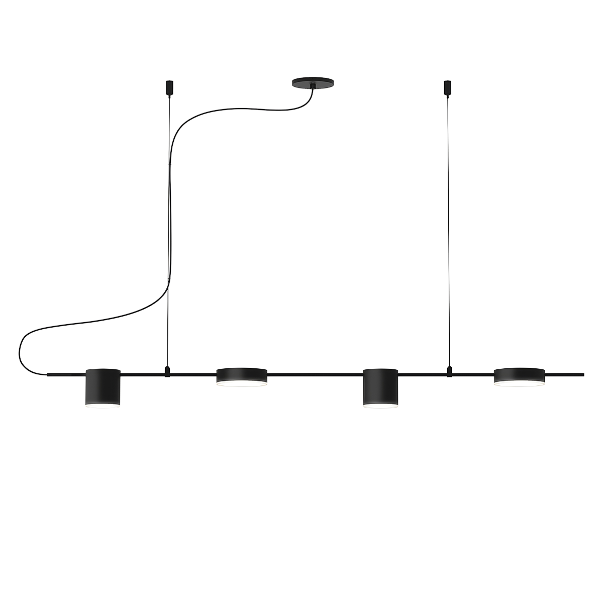 Flat disc and deep cylindrical forms, of different visual weights in juxtaposition to each other, are counterbalanced on offset slender arms in a rotating system of mass. Dramatically powerful in its simplicity, Counterpoint delivers bright LED luminance downward, with a subtly lit edge from the solid acrylic lenses of its cylindrical heads. Our Optional Mini Box Canopy is also available for the Counterpoint LED Pendant.