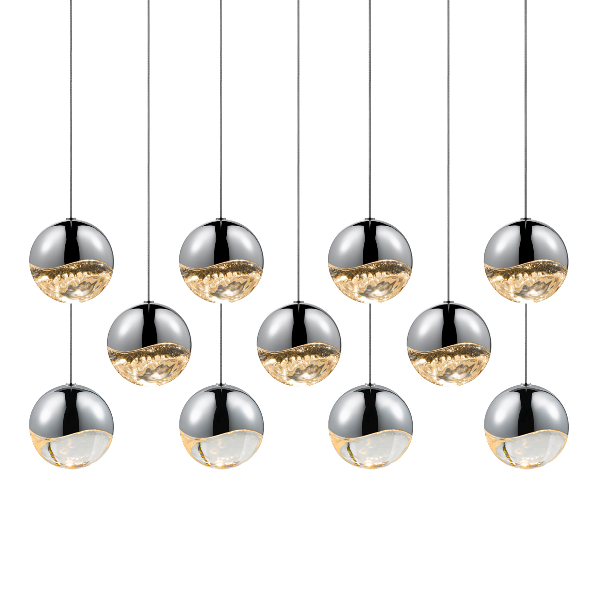 Precise or random, clustered or free, the Grapes® family explores a full spectrum of design possibilities. Suspended from slender stems, luminous LED spheres are capped in metal. A faceted crystal shade refracts the light with a dazzling radiance. Grapes is available as a single pendant or in configurations of up to 24 lights, with finish options including Polished Chrome, Satin Nickel, and Brass.