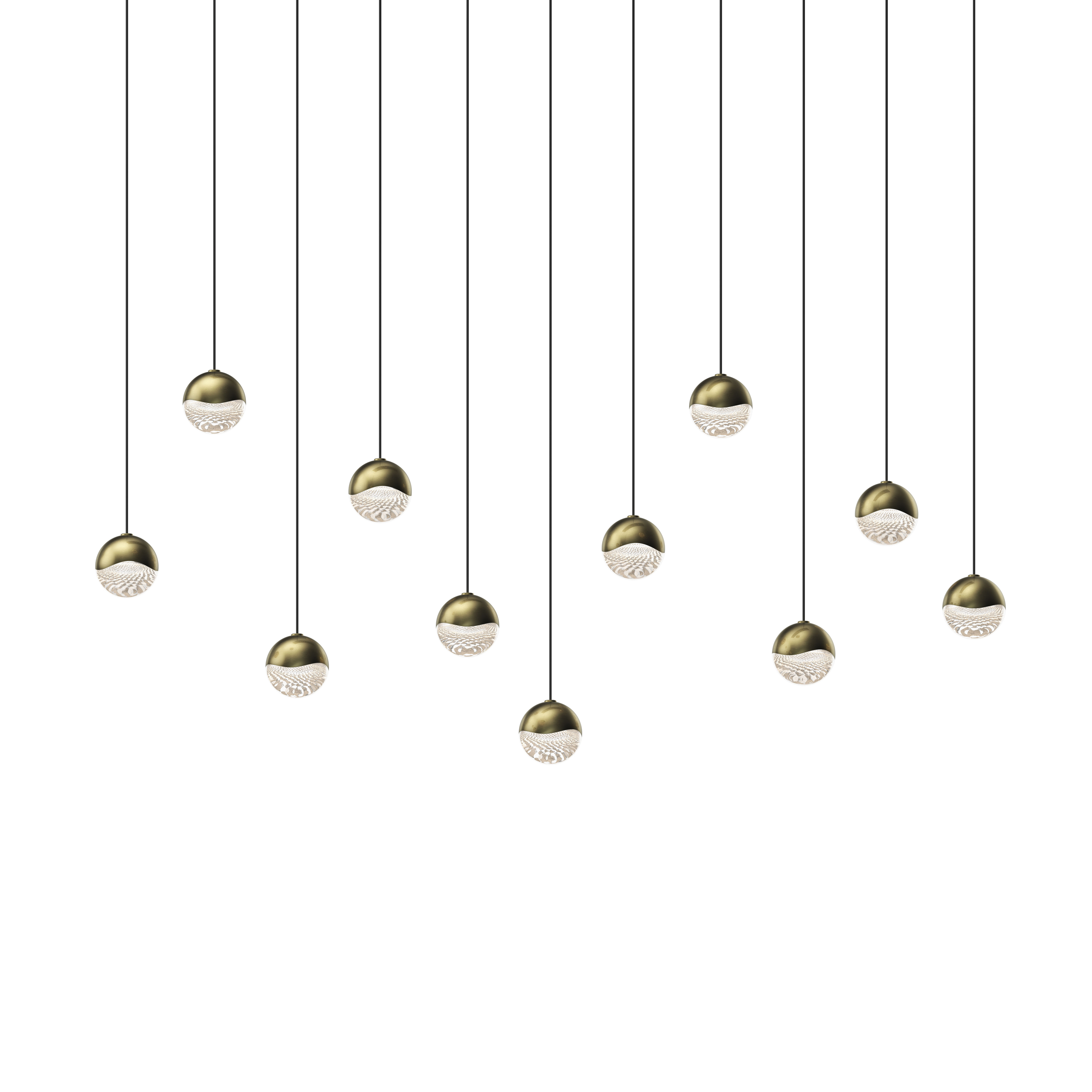 Precise or random, clustered or free, the Grapes® family explores a full spectrum of design possibilities. Suspended from slender stems, luminous LED spheres are capped in metal. A faceted crystal shade refracts the light with a dazzling radiance. Grapes is available as a single pendant or in configurations of up to 24 lights, with finish options including Polished Chrome, Satin Nickel, and Brass.