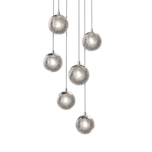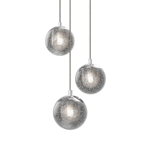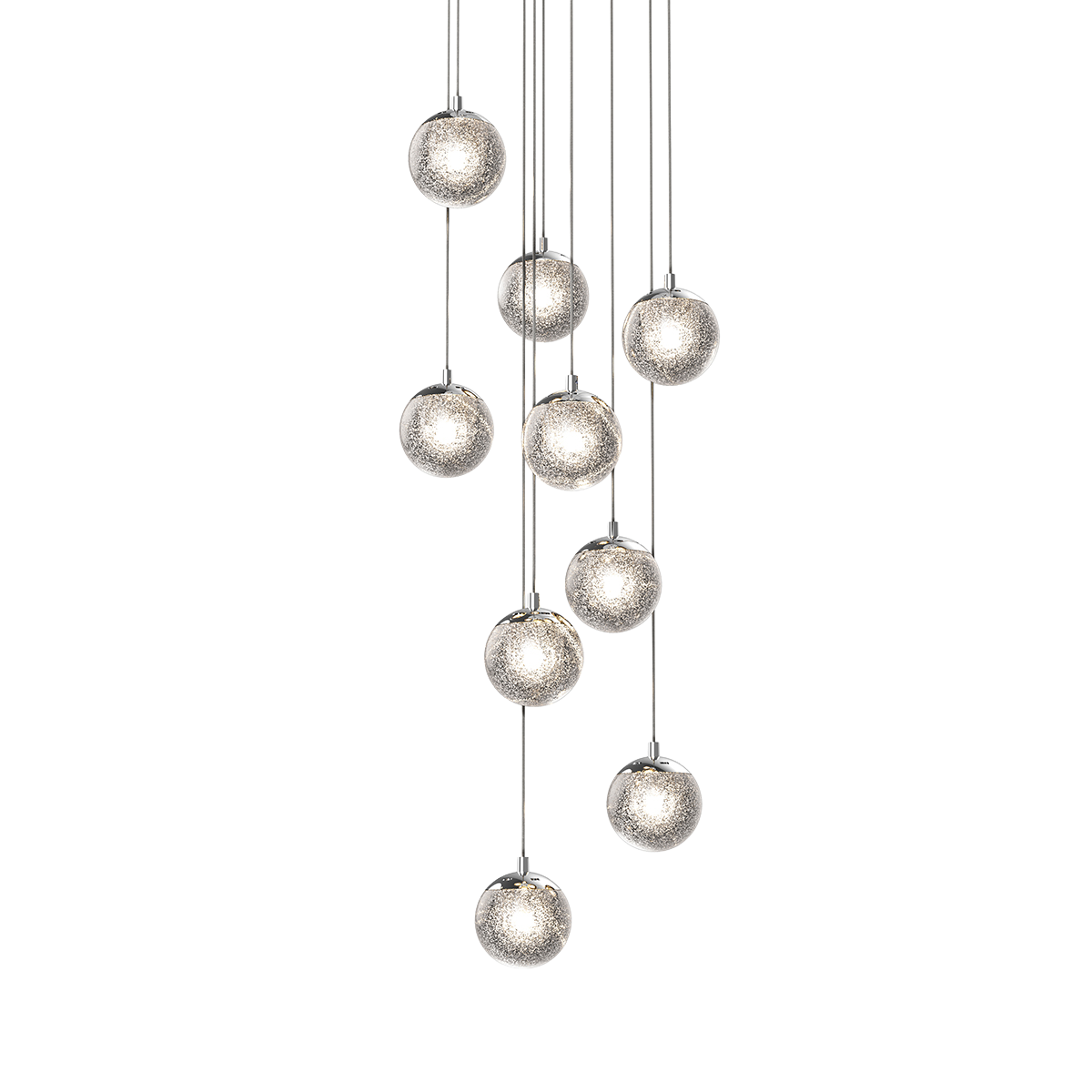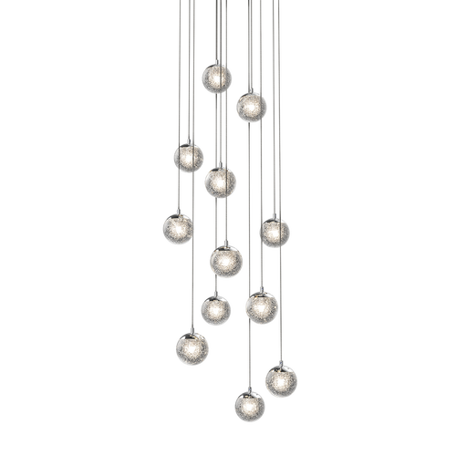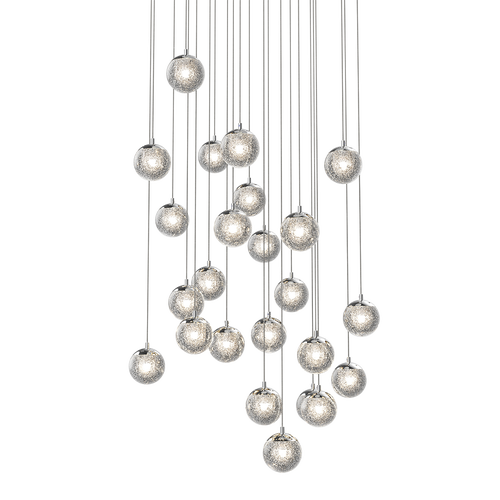 Light dances through a dazzling array of tiny bubbles within the solid mass of each glass crystal ball. A single source of LED illumination becomes refracted and diffused from within its effervescent volume. Also available as a chandelier.