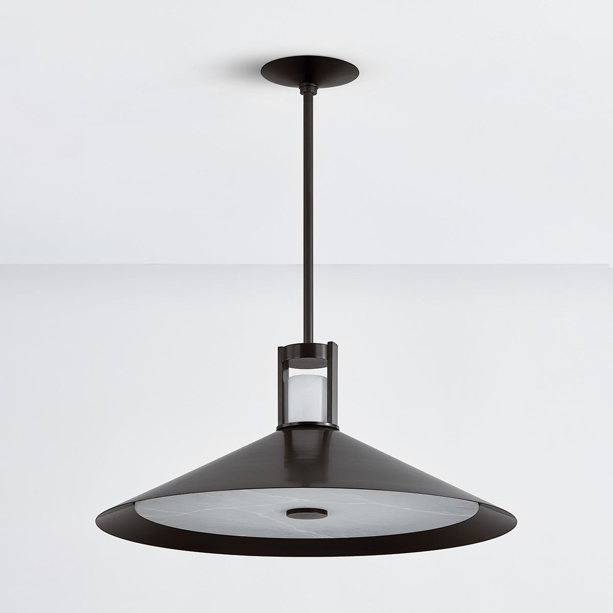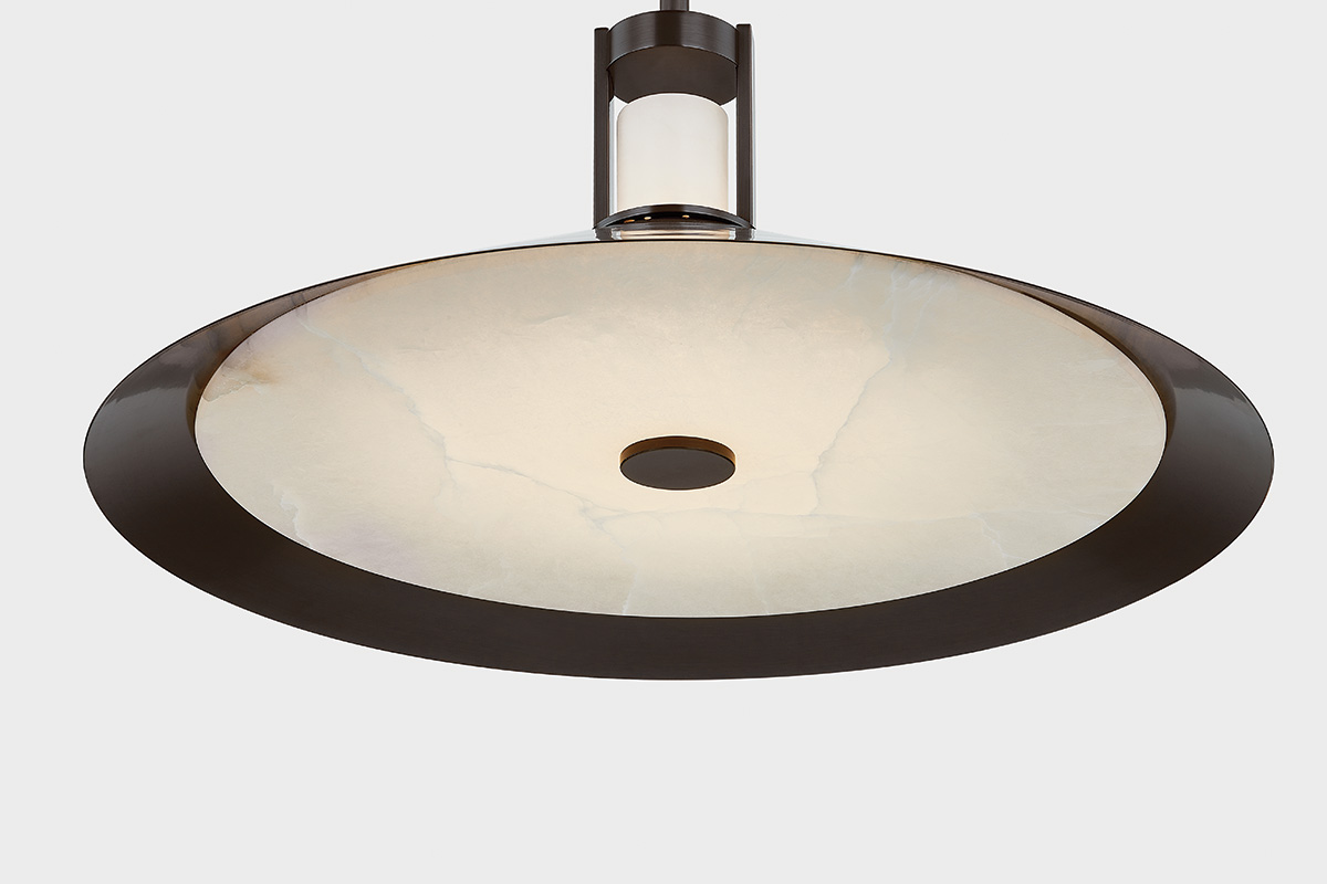 A luxurious basic for modern homes, Clermont features a sharply tapered conical shade and energy-efficient LED technology. When illuminated, the light washes over both the flat alabaster diffuser as well as the clerestory, flooding your living space with a soft glow. Available in two sizes and two finishes, Aged Brass and Distressed Bronze.
