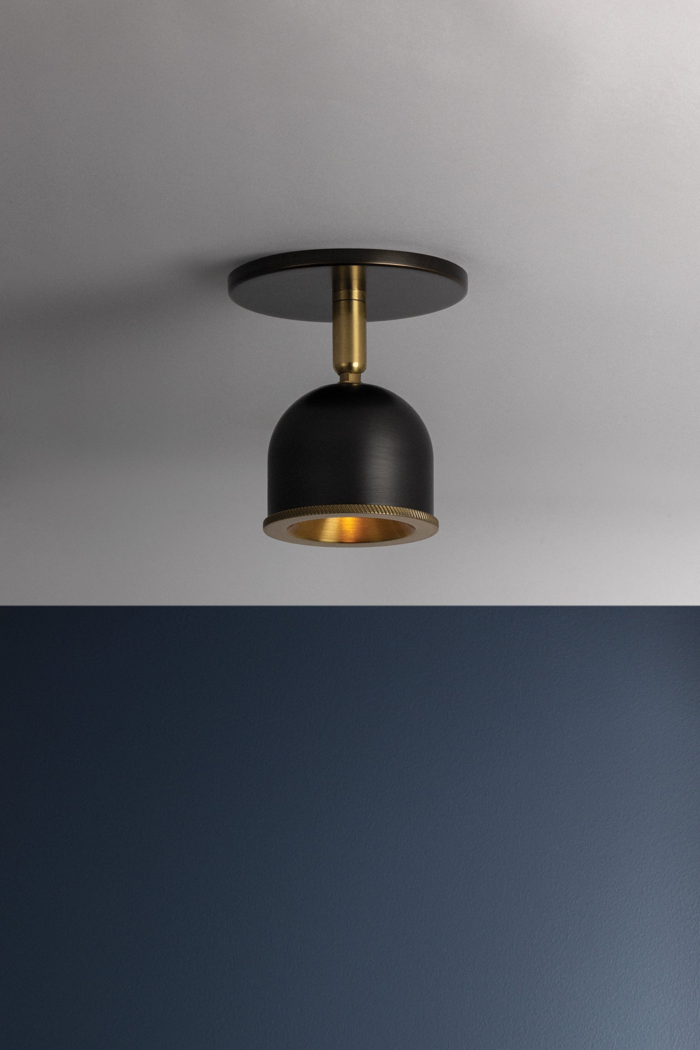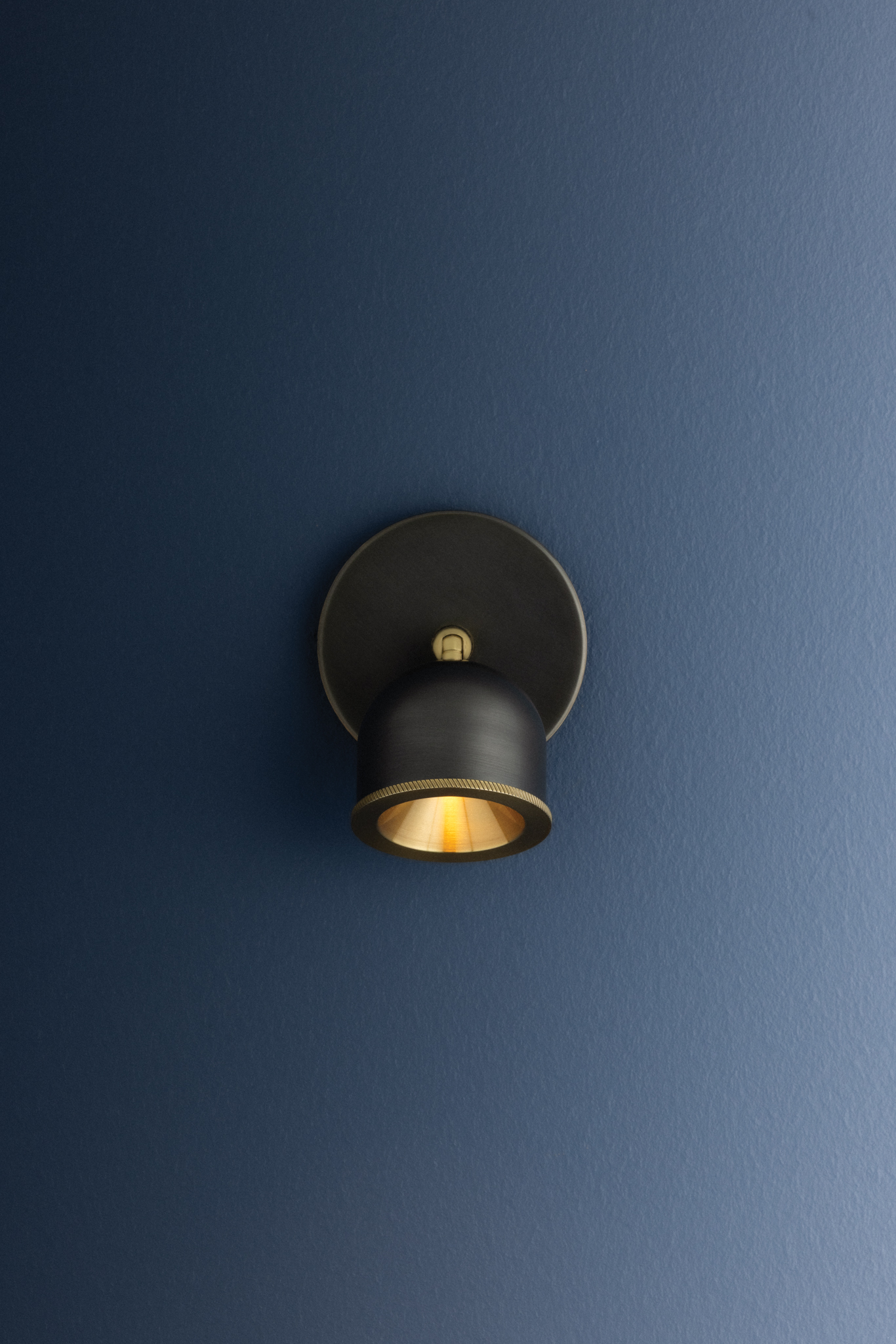 Incorporating CSL’s innovative ‘Whisper’ technology, the Tuthill sconce is a stylish alternative to traditional can lighting. A magnetic canopy eliminates visible screws for a clean look, accented by diagonal knurl around the edge of the fixture. Finished in Aged Brass or a two-tone combination of Aged Brass and Dark Bronze, Tuthill delivers simple, highly functional lighting in an easygoing format. Designed to be mounted on the wall or ceiling.