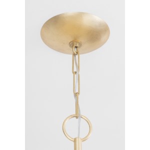Delicate discs of white-washed coco shells surround a Vintage Gold Leaf frame creating a form that feels both organic and high end. Add a soothing, luxe look to any ceiling with this modern semi-flush and chandelier.
